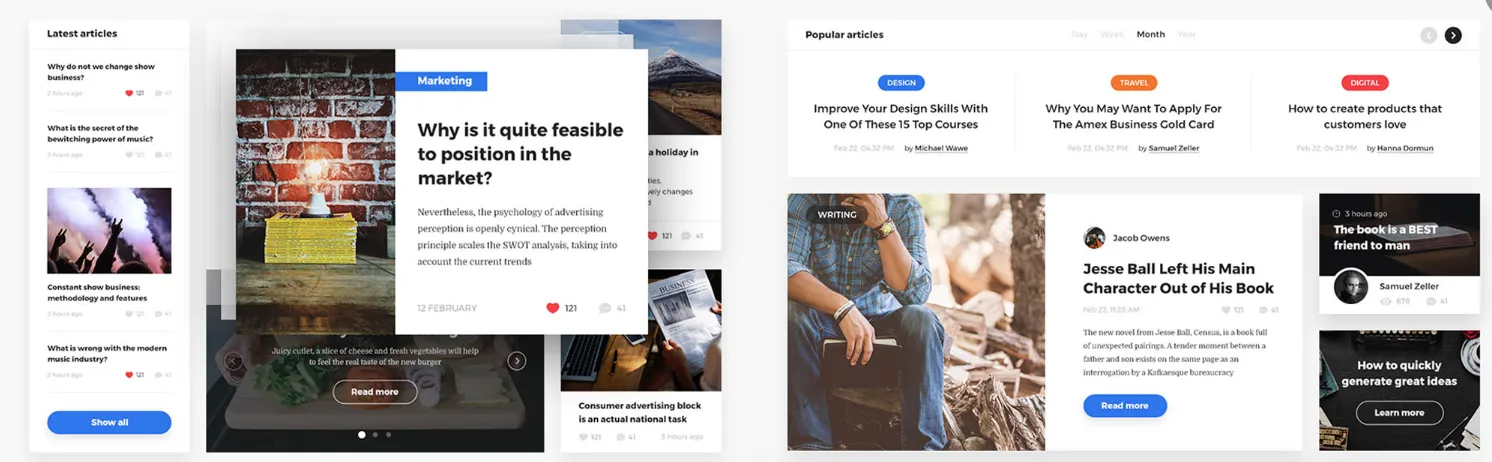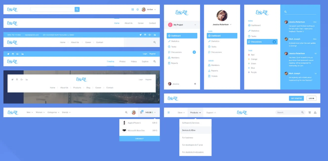 Дизайнеры создают UI kit для интернет-магазинов, мультимедийных приложений, новостных сайтов и любых других проектов для веба и мобайла.