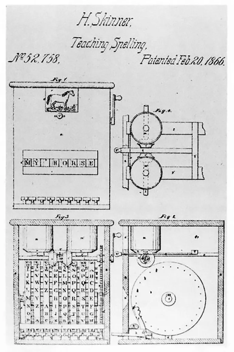 Первые машины для самообучения исследователи находят в начале XX века. В ходу уже были примитивные коробки с деревянными блоками для арифметического счёта или механические книги, в которых новые разделы открывались только после прочтения предыдущих. Но к таким устройствам можно отнести и машину для обучения орфографии, разработанную в XIX веке.