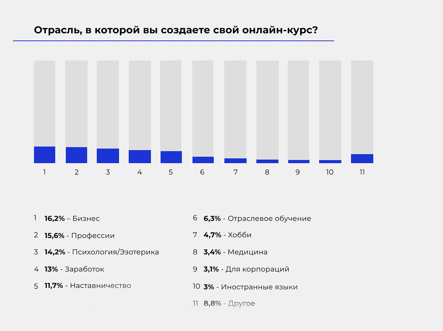 Авторы исследования поясняют, что в категории «Другое» участники опроса часто называли ниши, связанные со здоровьем и подготовкой к экзаменам.