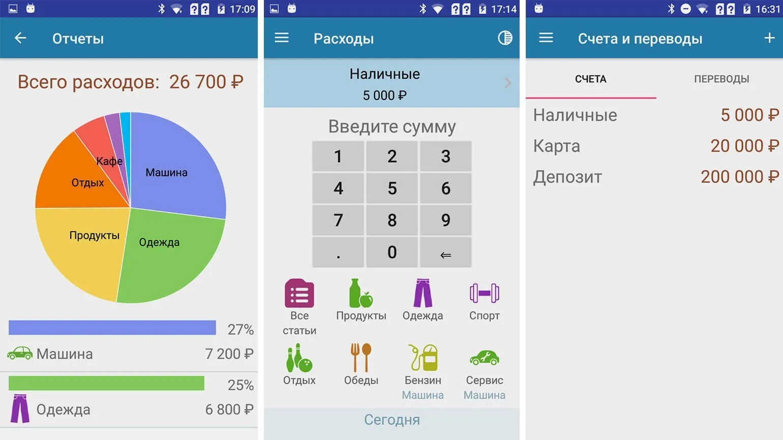 Бесплатная версия позволяет отслеживать расходы по ограниченному количеству категорий, анализировать отчёты за месяц и год.