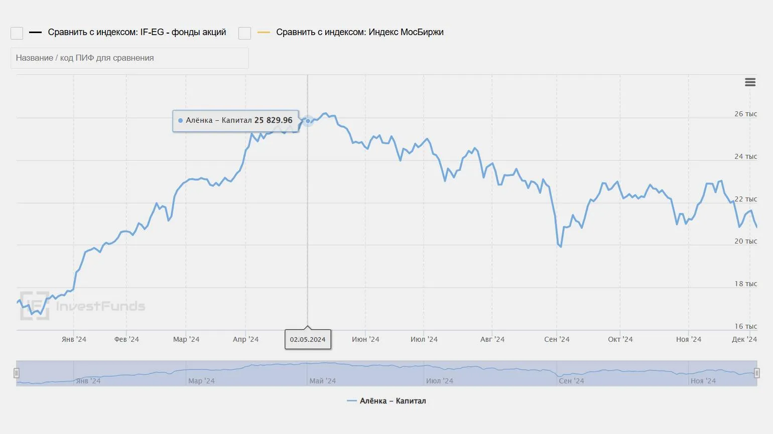 Заработать на паях можно за счёт увеличения их стоимости. Величина дохода зависит от качества активов, которыми управляет фонд, и их стоимости. Например, в период с января по ноябрь 2024 года самый доходный ОПИФ в России «Аленка — Капитал» приносил дольщикам 123,49% годовых.