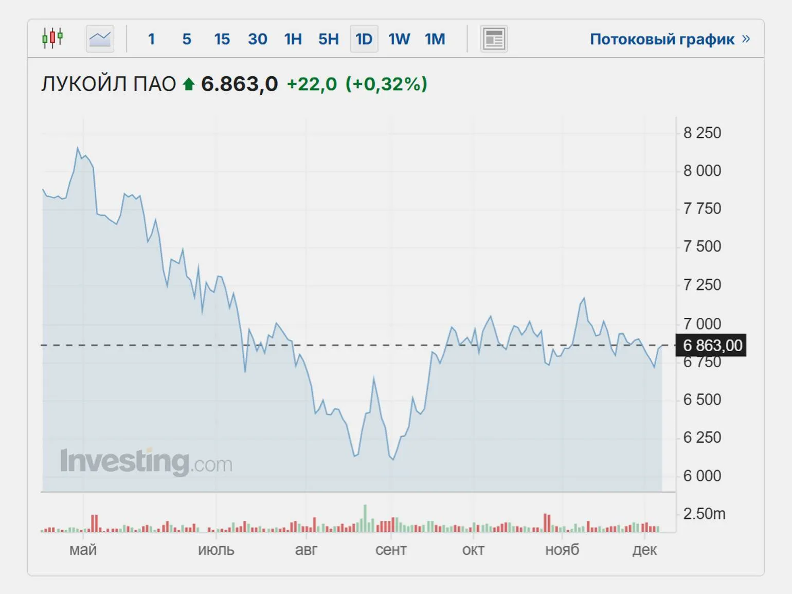 Доходы инвестора зависят от двух факторов — стоимости акций и размера дивидендов. Например, акции компании «Лукойл» в период с 2018 по 2024 год выросли на 29%.
