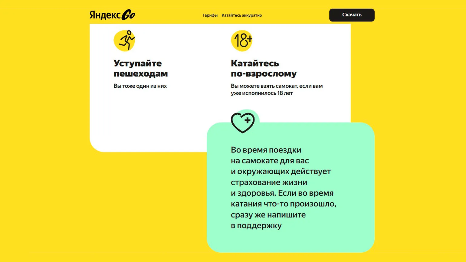За передачу самоката третьим лицам, которым нет 18 лет, или за поездку на одном самокате с ребёнком «Яндекс Go» штрафует пользователей на 100 тысяч рублей, согласно пунктам 9.18 и 9.20 правил сервиса.