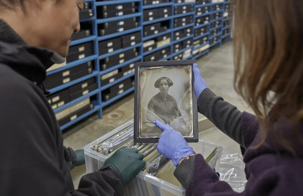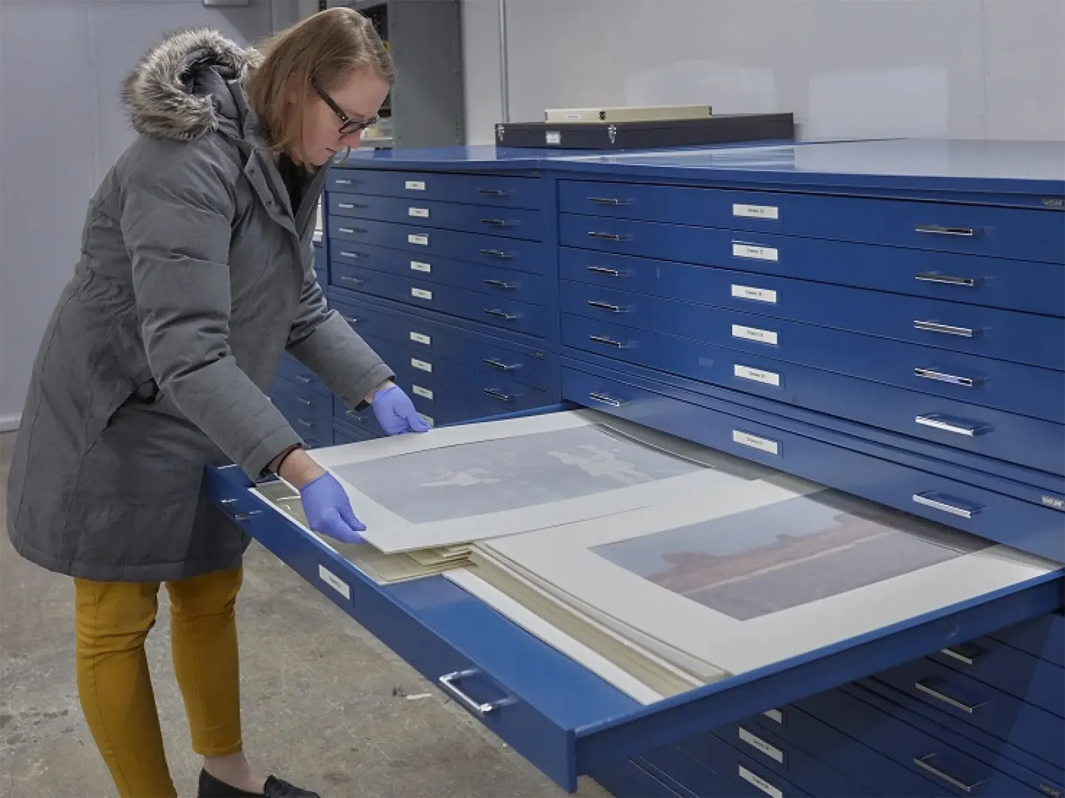 Фотографии в оригинальных кейсах не извлекают из них для хранения. Их кладут в картонную коробку — желательно точно подобрать её по размеру и проложить мягким мембранным материалом. Он отталкивает воду, но проницаем для воздуха и водных паров. Существуют специальные ткани для перевозки и хранения произведений искусства.