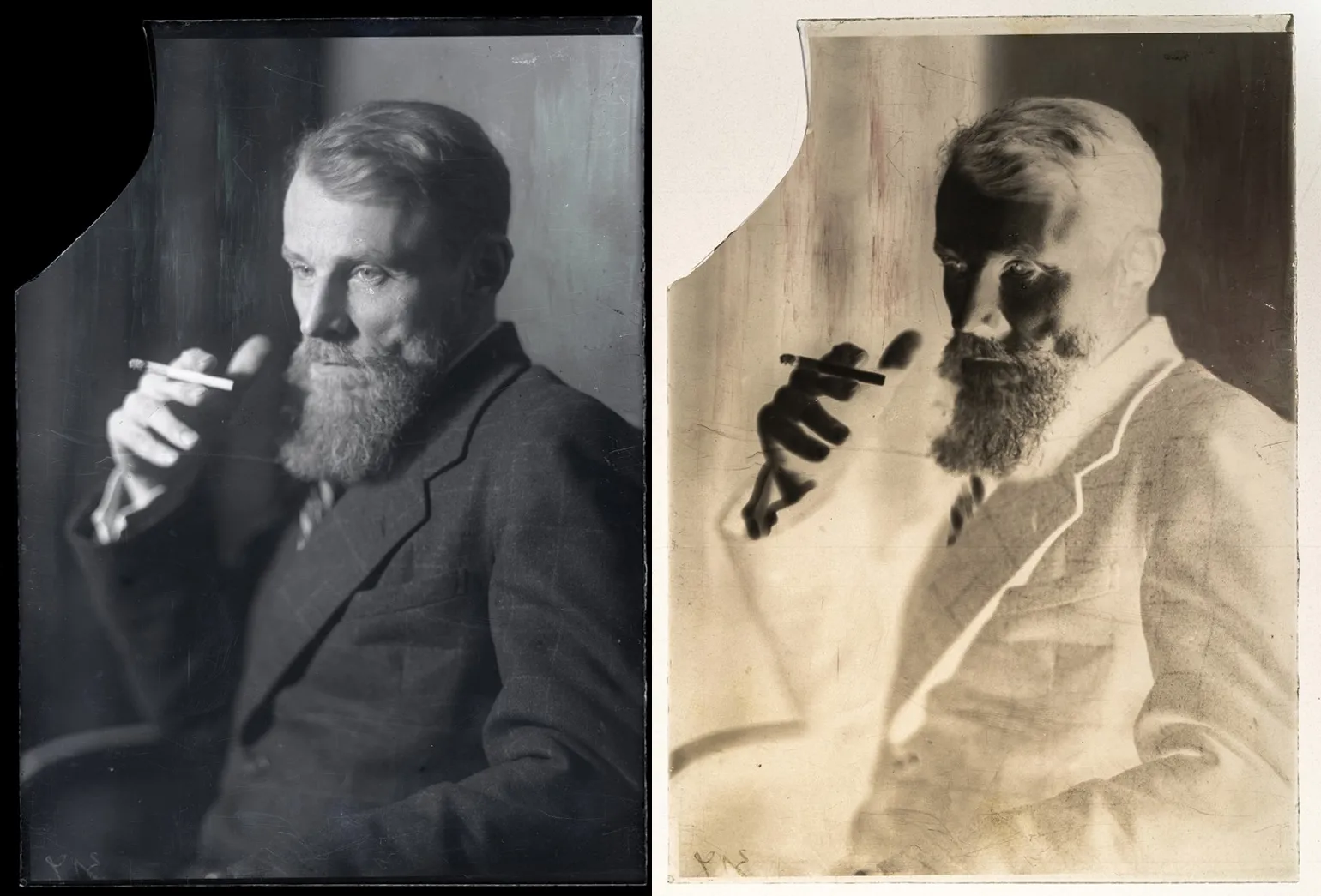 Между основой и изображением есть прозрачный связующий слой: альбумин, желатин или коллодий.