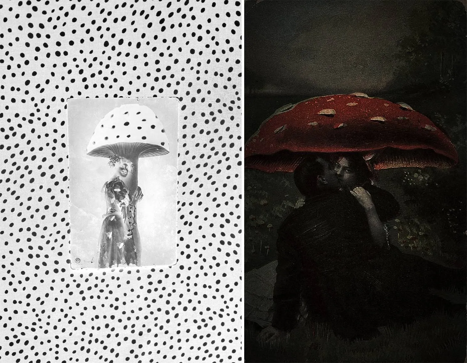 Красный мухомор не впервые становится у художников «проводником в мир магии». В фотопроекте 2020–2022 годов Amanita Muscaria (это латинское название гриба) они изучают двойственную природу отношения людей к этому популярному образу, а через него — к традиционной культуре и магии.