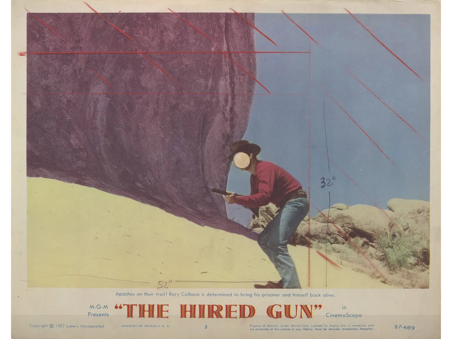 В проекте «История, скрытая за этим» / The Story Underneath американский художник Джон Балдессари работал с кадрами из старых фильмов, заклеивая лица персонажей цветными стикерами. Этот метод делает изображения абстрактными, стирая идентичность людей и фокусируя внимание на второстепенных деталях. В результате получается новый визуальный нарратив, в котором привычные сцены кино становятся частью художественного эксперимента с восприятием.