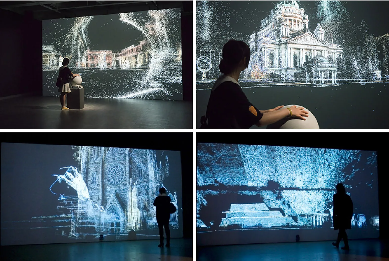 Нидерландский художник Марникс де Нийс создаёт 3D-модели городов, собирая изображения из интернета. Его интерактивные инсталляции из серии «Распадающиеся перспективы» / Exploded Views позволяют зрителю исследовать цифровые ландшафты, построенные из фрагментов реальных снимков, разрушая границы между документальным и виртуальным.
