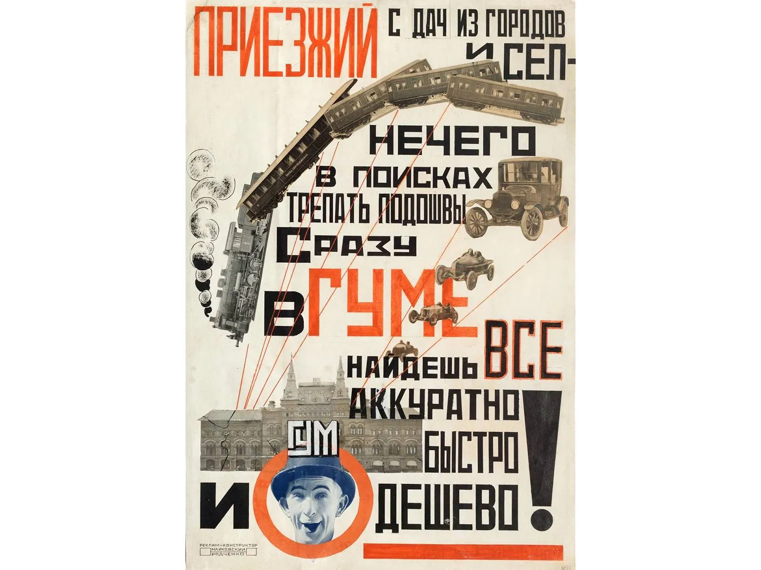 Александр Родченко одним из первых начинает экспериментировать в этой области. Он составляет иллюстрации из газетных и журнальных вырезок и смешивает изображения и текст, раскрывая потенциал фотомонтажа как отдельного медиума в искусстве. Один из лидеров конструктивизма, Родченко пропагандировал искусство как производство, и техника коллажа с его использованием готовых визуальных элементов отвечала этой идее. В фотомонтаже само расположение изображений позволяло Родченко транслировать новые смыслы.