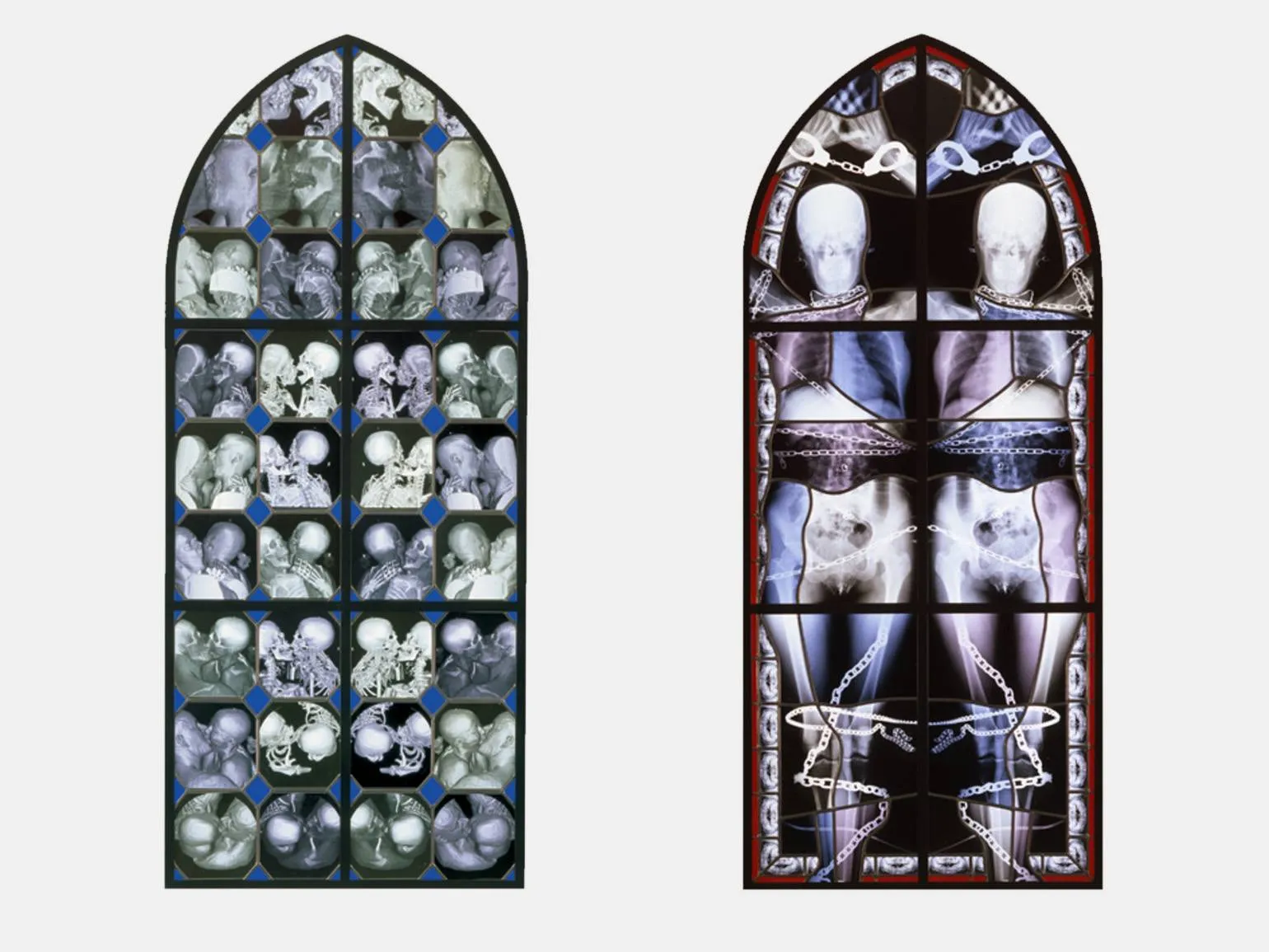 Рентгеновская фотография — технология, которая изначально связана с медицинской диагностикой, — становится инструментом художественного исследования. Здесь присутствуют не только анатомические изображения костей, но и сцены, отсылающие к библейским сюжетам, а также откровенные сексуальные образы. Эти работы, выполненные на прозрачной основе и подсвеченные, имитируют витражи средневековых соборов, но их содержание радикально подрывает сакральную традицию.