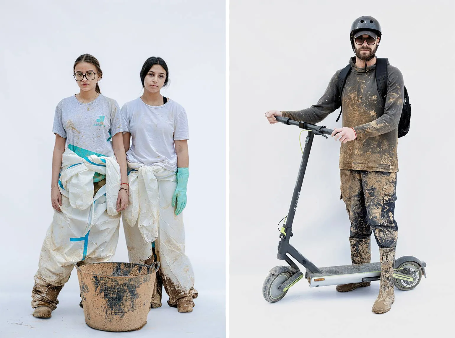 Фотограф Рауль Белинчон провёл 72 часа с молодыми волонтёрами в муниципалитете Пайпорта. Вооружившись швабрами, вёдрами, щётками и лопатами, они убирали дома, магазины и улицы; волонтёры приносили лекарства больным, еду голодным и одежду тем, кто потерял всё. Установив белый фон у длинного пешеходного моста, переименованного в Мост солидарности, Белинчон сфотографировал «ангелов грязи» на пути домой.