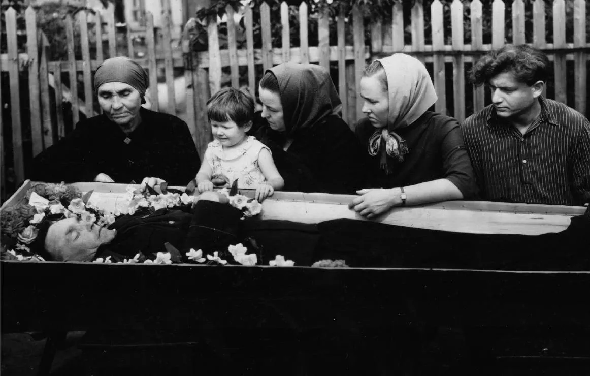 Если же мы говорим про эстетику сегодняшней посмертной фотографии — она очень разная. Конечно, в чём-то до сих пор проявляется влияние православной традиции, и мне оно кажется больше визуальным, нежели смысловым. Выстраивать пришедших на прощание полукругом около гроба, например, удобно для композиции.