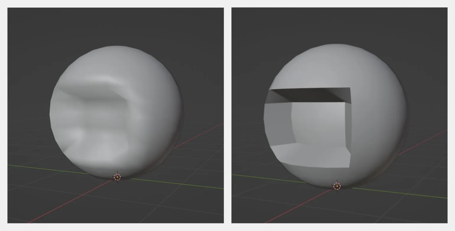 Объект c гладким затенением (Shade Smooth) до и после автосглаживания (Auto-Smooth) Скриншот: Леон Балбери для Skillbox Media