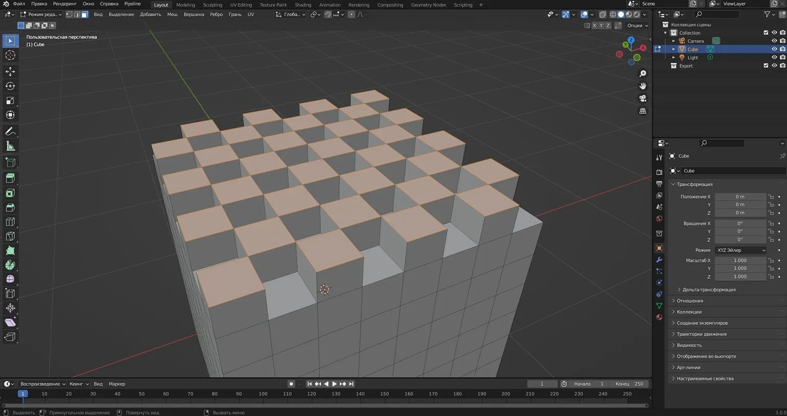 Симметричное редактирование двух кубов Скриншот: Леон Балбери для Skillbox Media