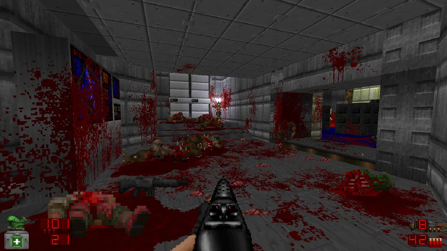 Каждое ранение вызывает потерю крови и, соответственно, очков здоровья. Чтобы применить аптечку, нужно найти укромное место и снять с себя броню и рюкзак с амуницией: только тогда удастся остановить кровотечение. В общем, многие аспекты геймплея граничат с мазохизмом, зато, если всё же есть желание в них разобраться, в начале есть удобное обучение. Также в этом моде есть как новые, так и обычные уровни Doom.