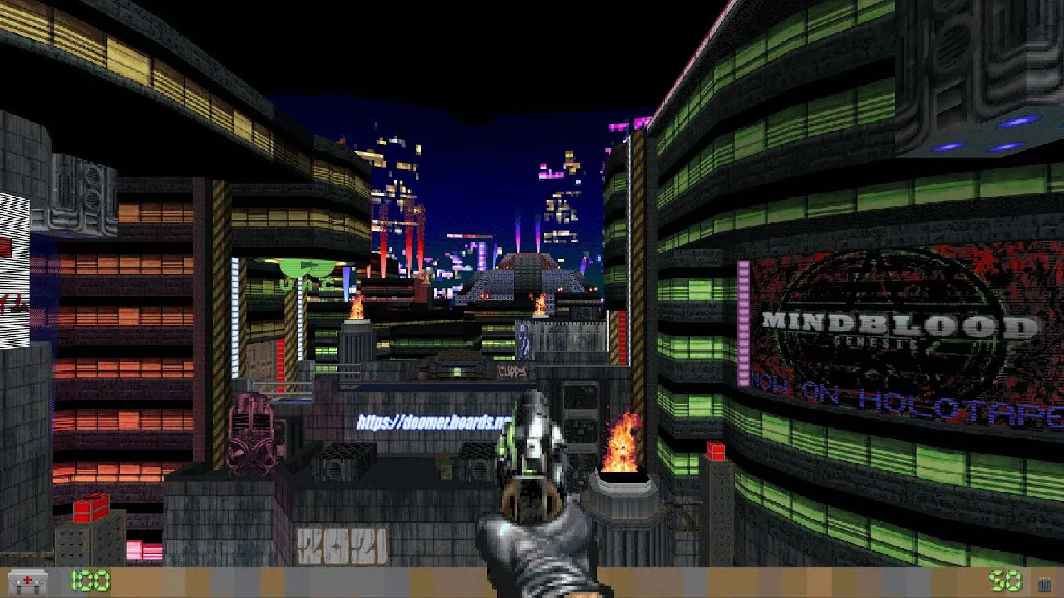 Doom теперь в стиле киберпанк! Всё как полагается: ночь, небоскрёбы, футуристичные интерьеры. Этот MegaWAD группа авторов создала всего за один месяц; в его комплекте — 21 пропитанный неоновым светом уровень, а также рескины текстур и оружия. Саундтрек соответствует визуальному наполнению: MIDI-дорожки с электронным джазом усиливают атмосферу и напоминают саундтреки к старым 16-битным играм.