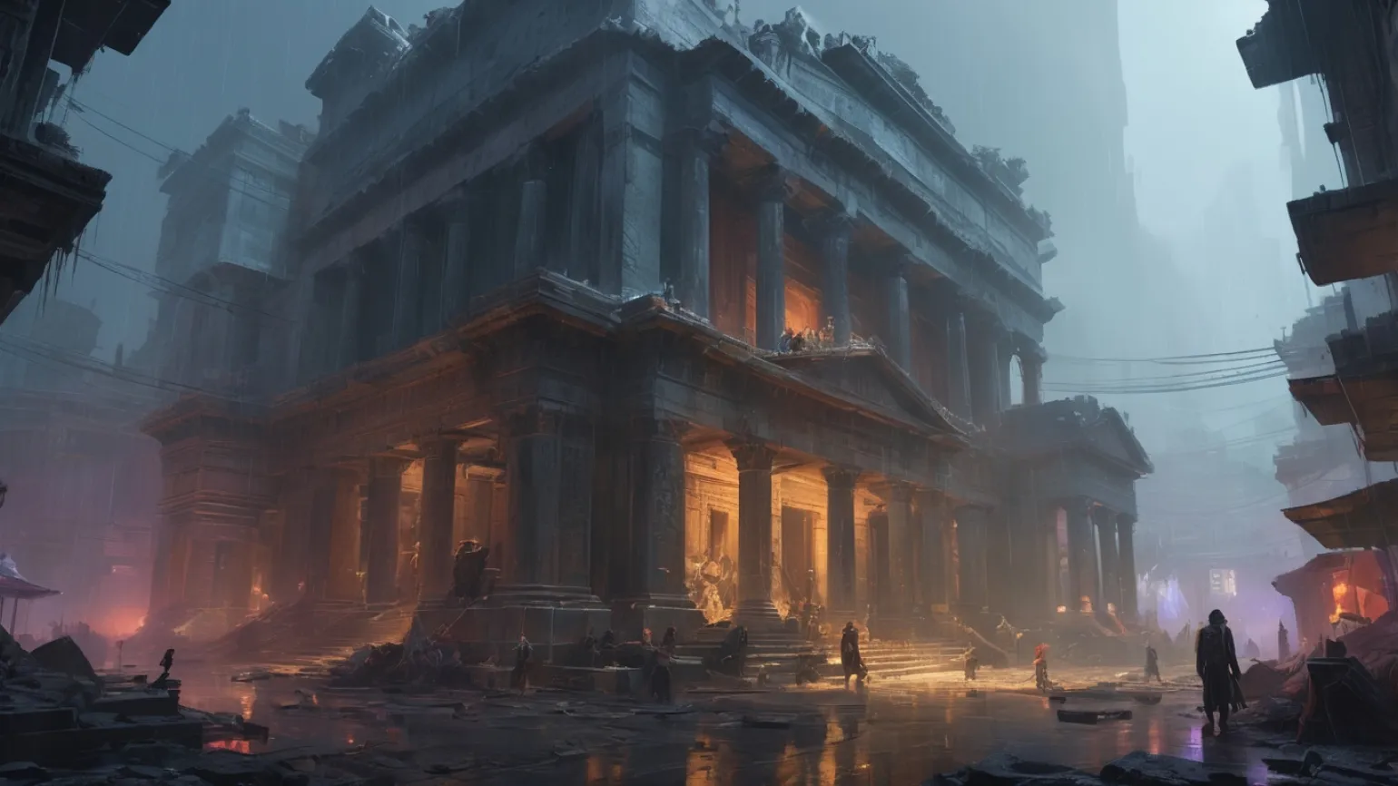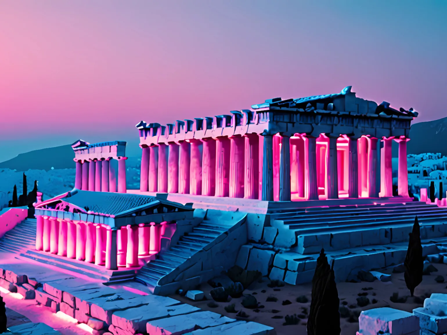 Для сравнения здесь тоже задали нарисовать древнегреческий город в неопанк-стиле