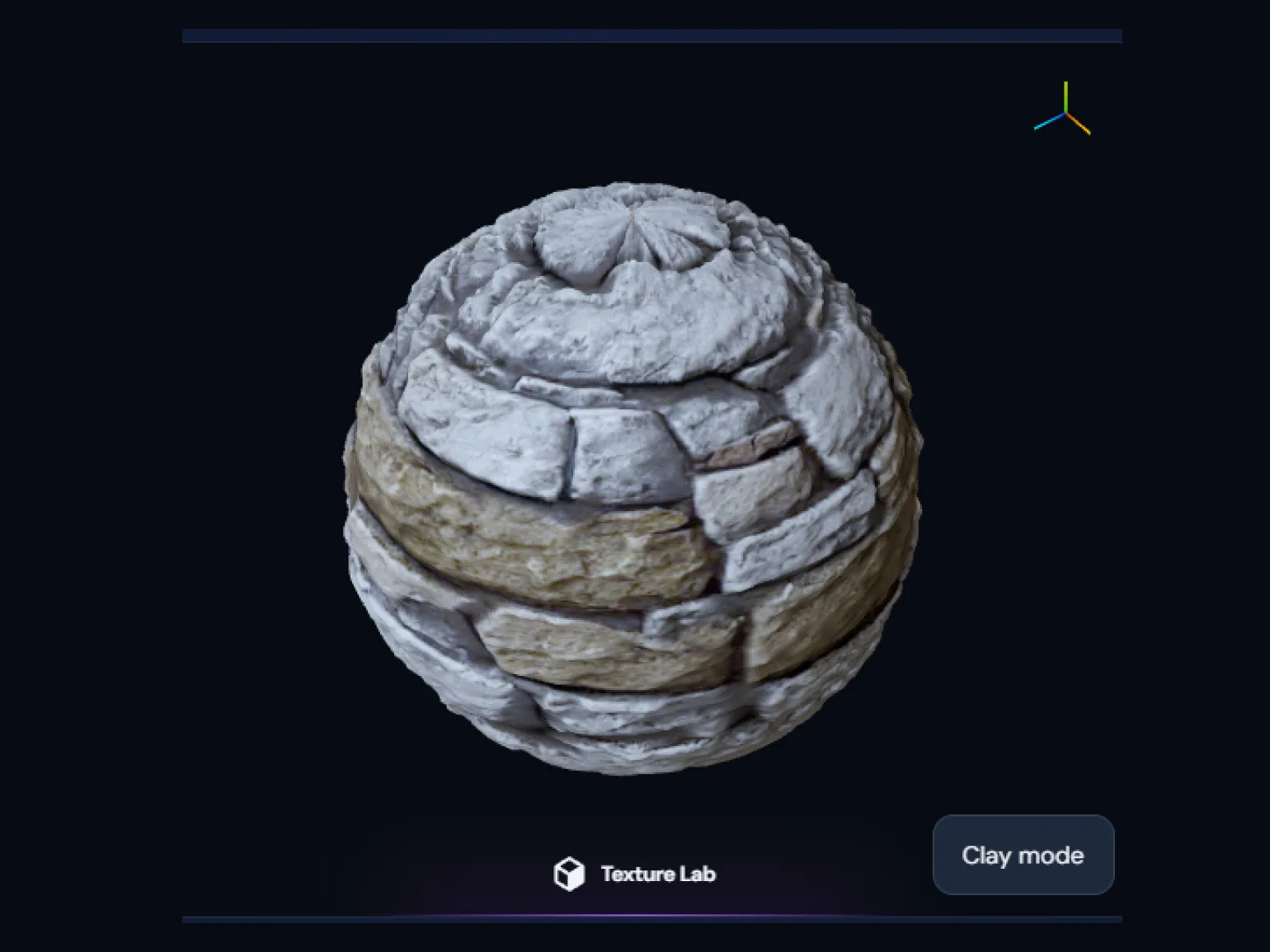 Сервис генерирует бесшовные текстуры для 3D-моделей по текстовому запросу. Можно как создавать свои текстуры, так и использовать готовые шаблоны из бесплатной библиотеки. С запросом нейросеть справляется примерно за 5–10 минут, готовый вариант демонстрирует на 3D-сфере.
