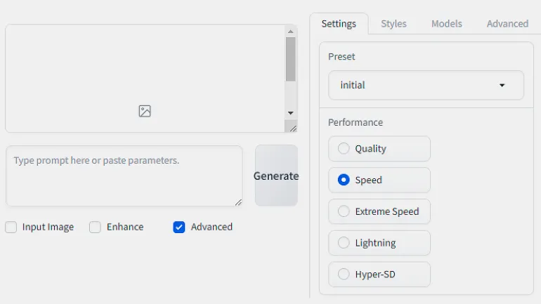 6. Справа появится четыре вкладки с расширенными настройками: там можно выбирать стили и модели, формат и соотношение сторон картинки, количество изображений по одному запросу и много других нюансов. Если поставить галочку напротив Enhance, откроется меню для редактирования и улучшения одного из сгенерированных вариантов. Input Image даёт возможность загружать картинки, на которые будет ориентироваться нейросеть.