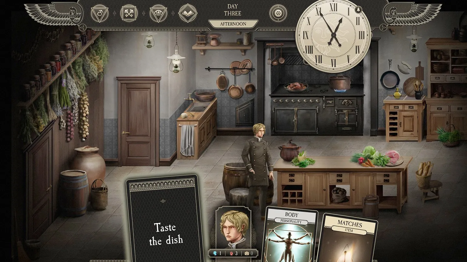 Идея игры появилась в июле. Дальше мы разбирали, в какой форме воплотить это содержание. Это было сложно, учитывая, как «Праздник» отличается от The Life and Suffering of Sir Brante. В первом случае — интерактивный спектакль в трёхмерных декорациях, а во втором — интерактивный роман, выглядящий как иллюстрированная книга.