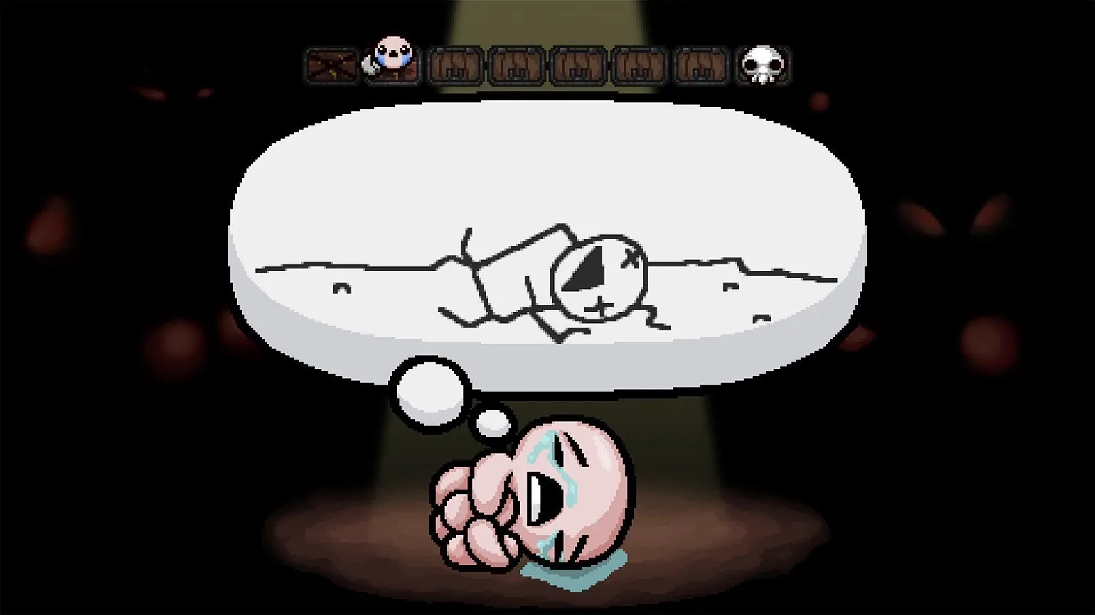 The Binding of Isaac довольно быстро даёт понять, что происходящее — плод воображения Айзека, а монстры и бонусы — воплощение его страхов и фантазий. Многие враги — обезображенные версии самого героя, убивает он их слезами, хлещущими из глаз, а среди улучшений встречаются мамины туфли, помада и нижнее бельё.
