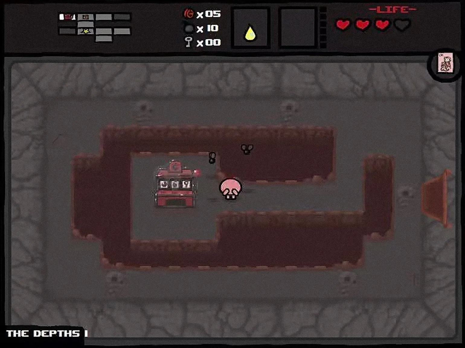 Кроме того, игра много что заимствует из The Legend of Zelda — прежде всего структуру подземелий и основные типы ресурсов: ключи, бомбы, монеты и сердца, которые алгоритм разбрасывает по процедурно сгенерированным комнатам. Уровни The Binding of Isaac состоят примерно из 10–20 комнат, которые случайным образом отбираются из 200 комнат, заранее созданных для каждой главы.