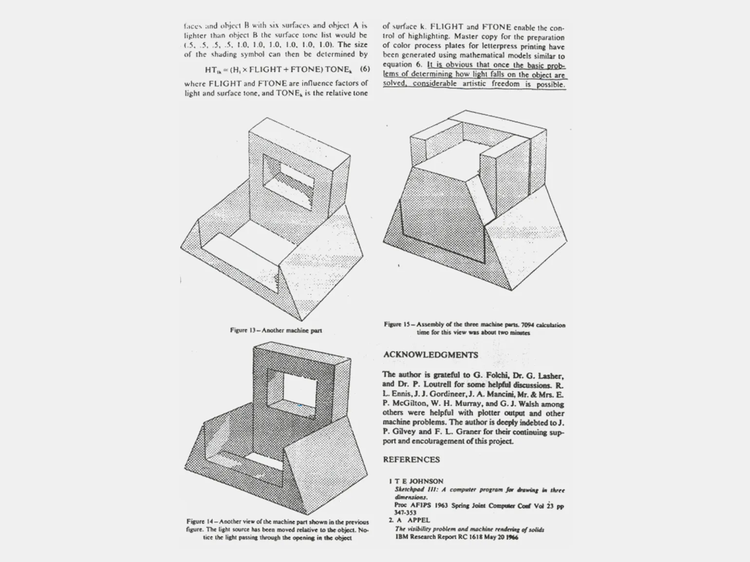 Примерно в это же время Артур Аппель из исследовательского центра IBM разработал рейкастинг (предшественник рейтрейсинга) — первый алгоритм рендеринга, основанный на использовании трассировки лучей для распознавания и последующего отображения видимой поверхности.