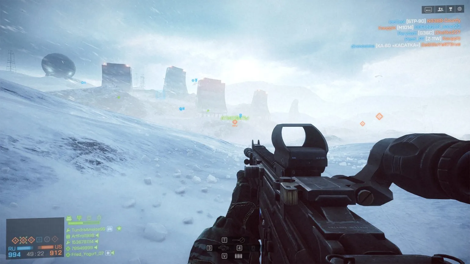 Во-вторых, Battlefield 2042 отчаянно не хватает роли командующих: в игре есть только командиры отрядов, и без единого руководства 64 незнакомца быстро превращаются в ораву, которая бестолково носится туда-сюда по карте — и проигрывает матч. Ситуация усугубляется ещё и тем, что DICE не успела доделать голосовой чат к релизу. Поэтому, если вы играете не с друзьями, об эффективной коммуникации можно забыть.