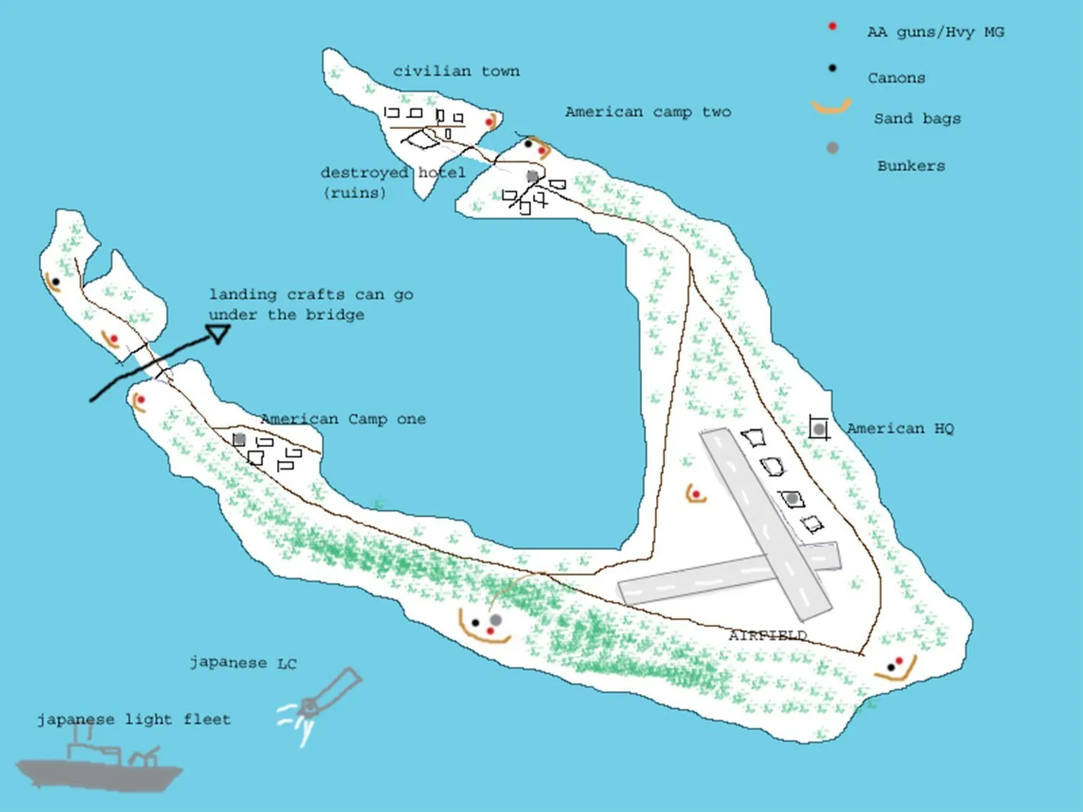 Ранний набросок карты «Остров Уэйк». Японский флот позже переедет в левый верхний угол. Изображение: DICE