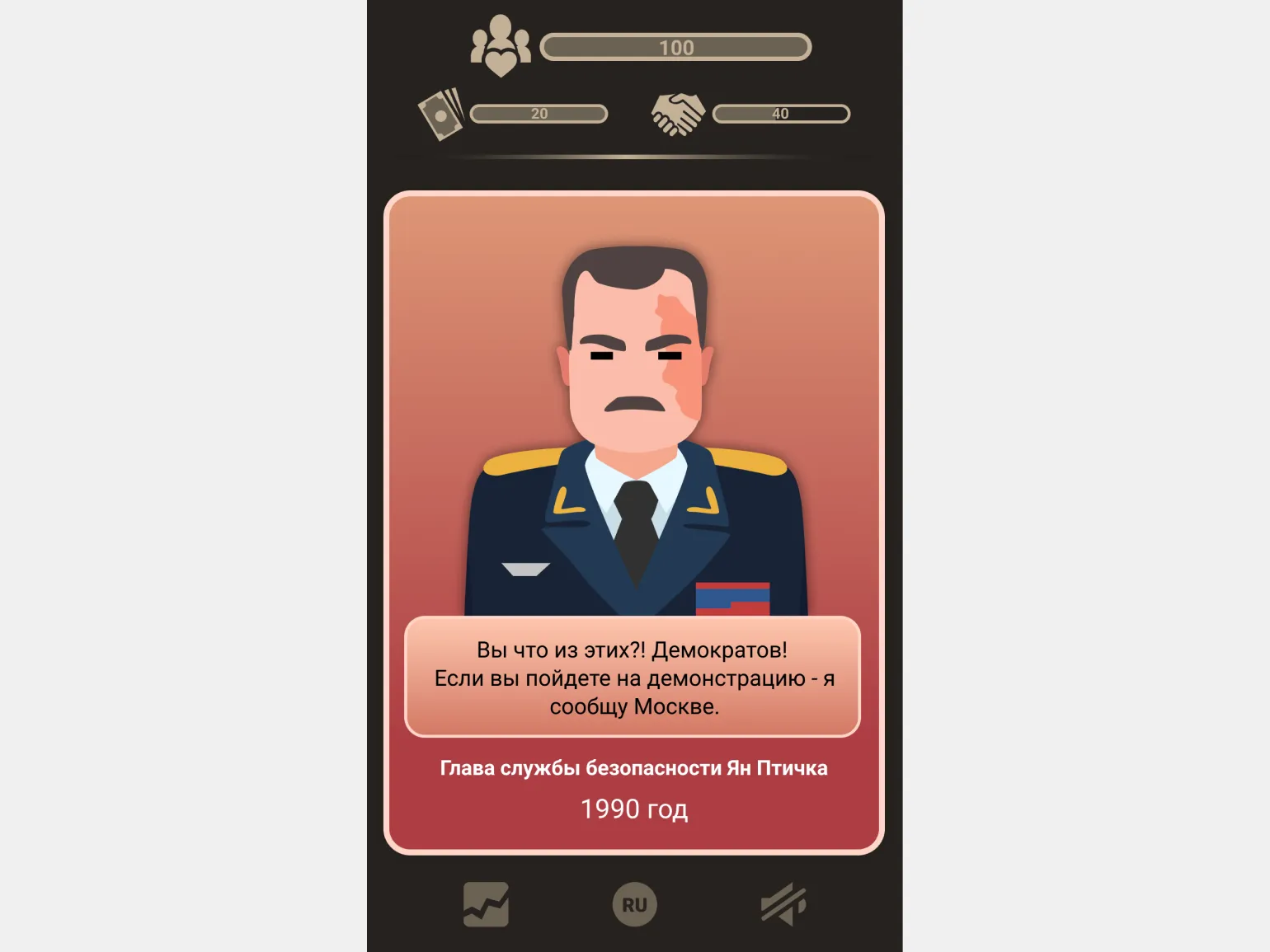 Естественно, мы не могли обойти приметы времени вроде проявления свободного рынка и восстановления религии. Поэтому добавили олигарха, предпринимателя и митрополита. В ходе разработки выяснилось, что нужен ещё один персонаж, так сказать «переходник»: в его случае историческая ситуация не имеет чёткой категории. И последним основным героем стал секретарь мэра.