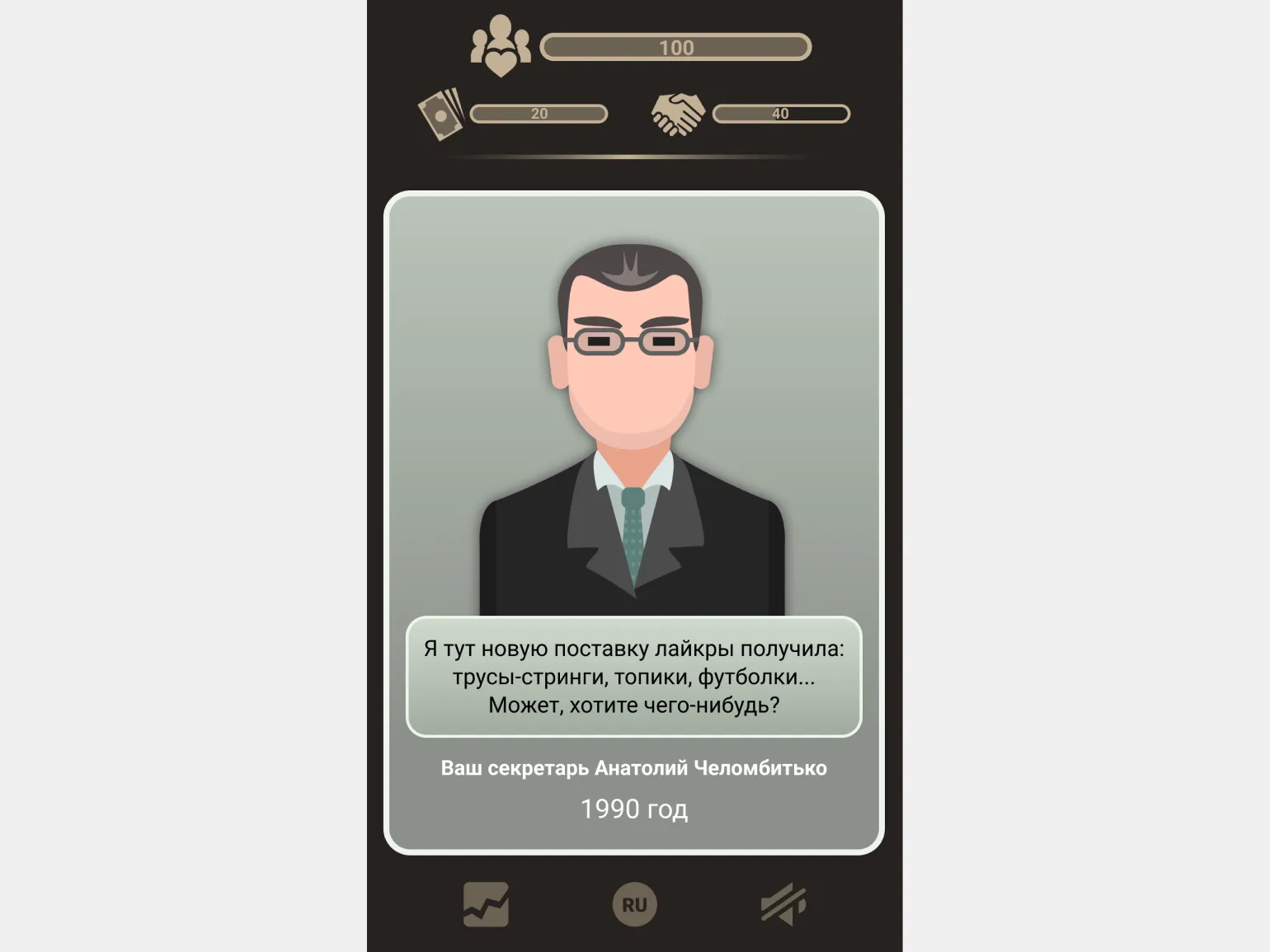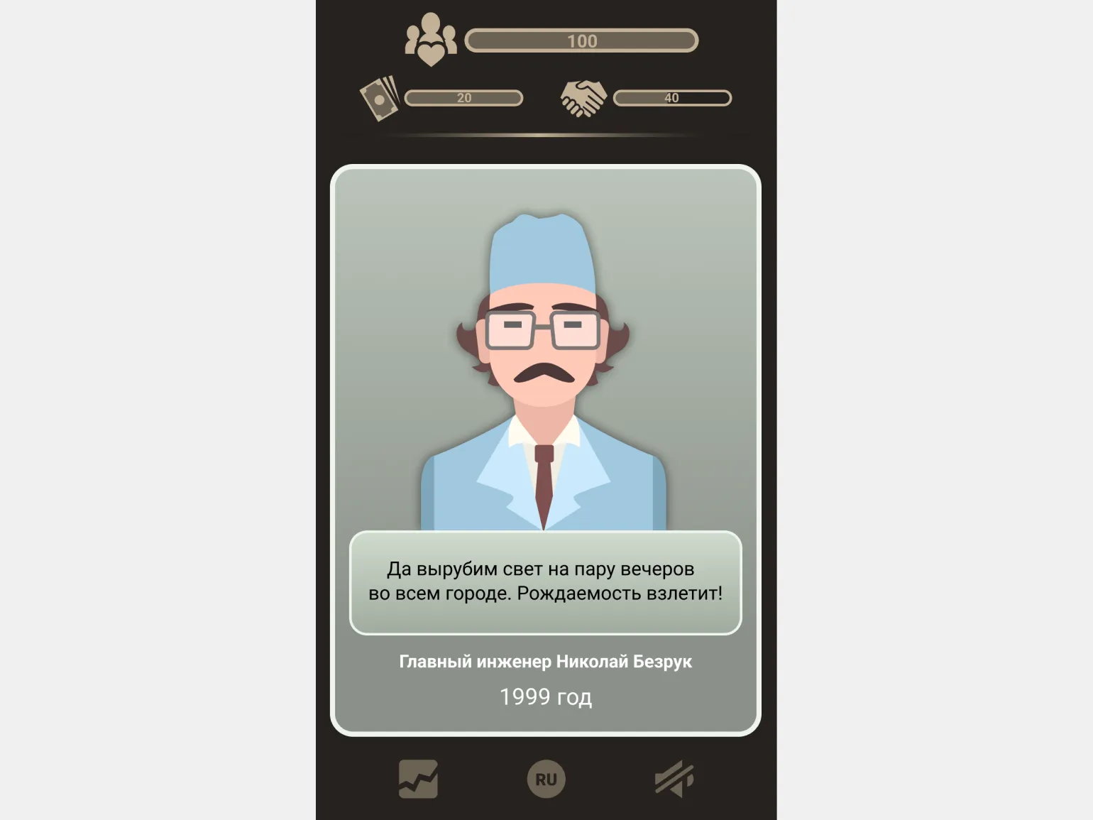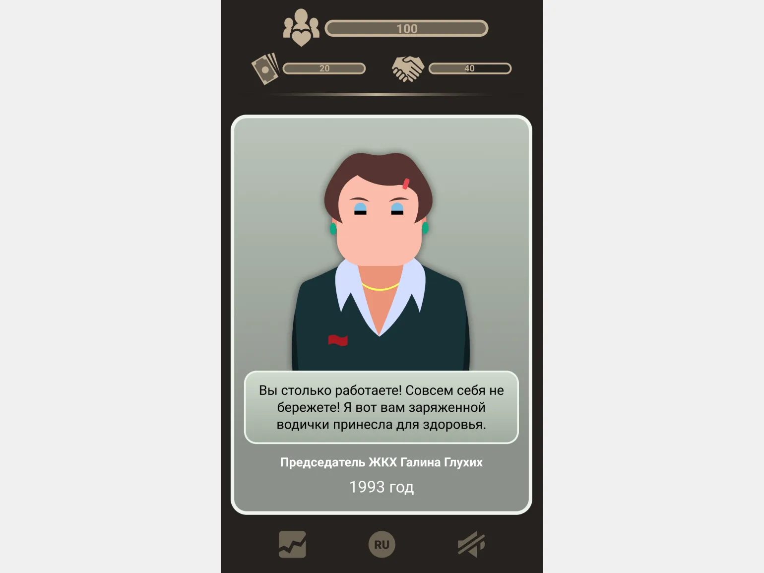 Начну с ТЗ. В IThub games (студию, где я работаю) обратился заказчик, который хотел получить игру на пару часов про 1990-е годы в России. Цель — повысить интерес молодёжи к тому периоду. При этом нужно было затронуть все возможные сферы жизни и показать неоднозначность и сложность управленческих решений, которые принимали политики тех лет.