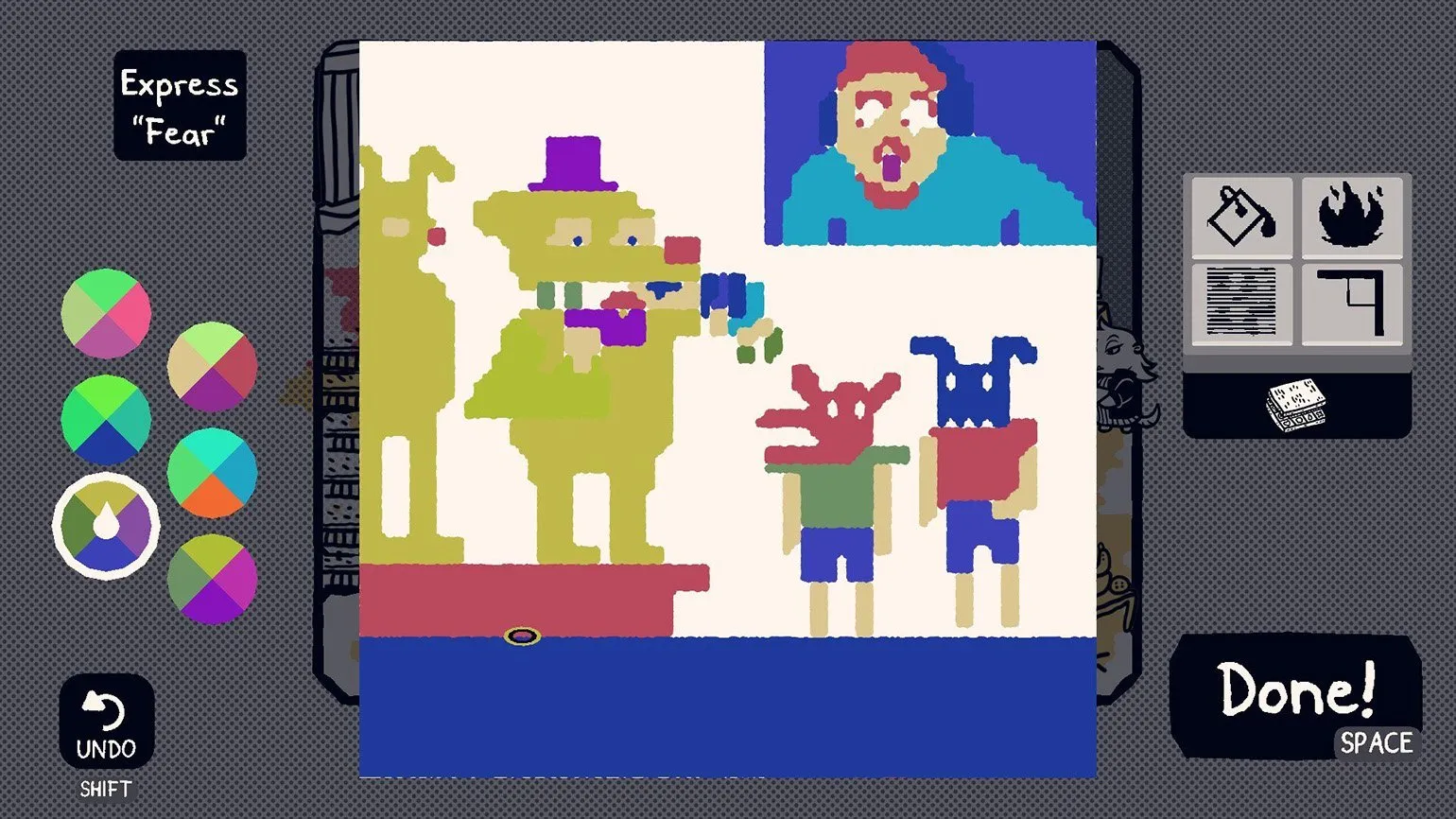 Запросы с точечными, но достаточно размытыми и специфичными темами тоже приводят к непредсказуемым результатам — а иногда и личным, если эти темы откликаются в игроке. К примеру, на некоторых уроках в академии вам предлагают нарисовать определённые эмоции: радость, страх, печаль, злость. Если открыть сообщество Steam и посмотреть скриншоты игроков, то вы увидите, насколько сильно могут разниться интерпретации.