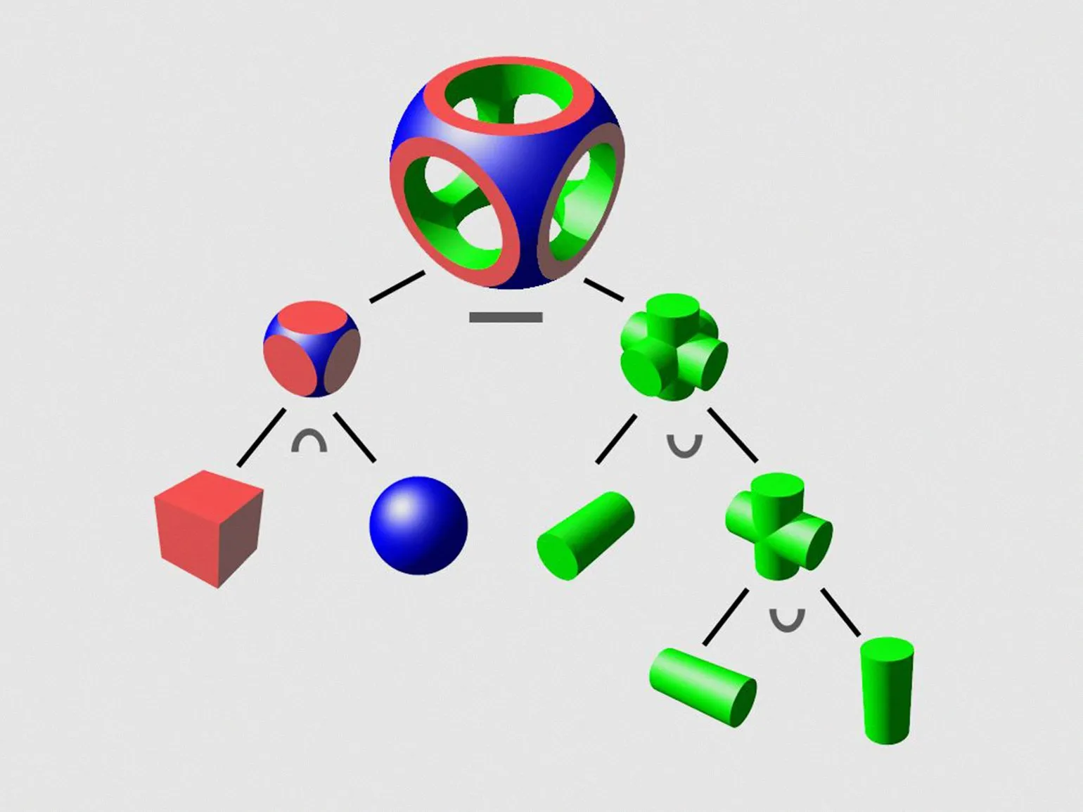 Звучит страшно, но это просто одна из технологий моделирования объектов в трёхмерной графике. Принцип в том, что сложная геометрическая фигура, которую компьютеру, по идее, трудно обсчитывать, — это на самом деле лишь набор из нескольких примитивных геометрических фигур (куб, сфера, цилиндр). Просто над ними выполнена одна из трёх логических операций — слияние, вычитание или пересечение.