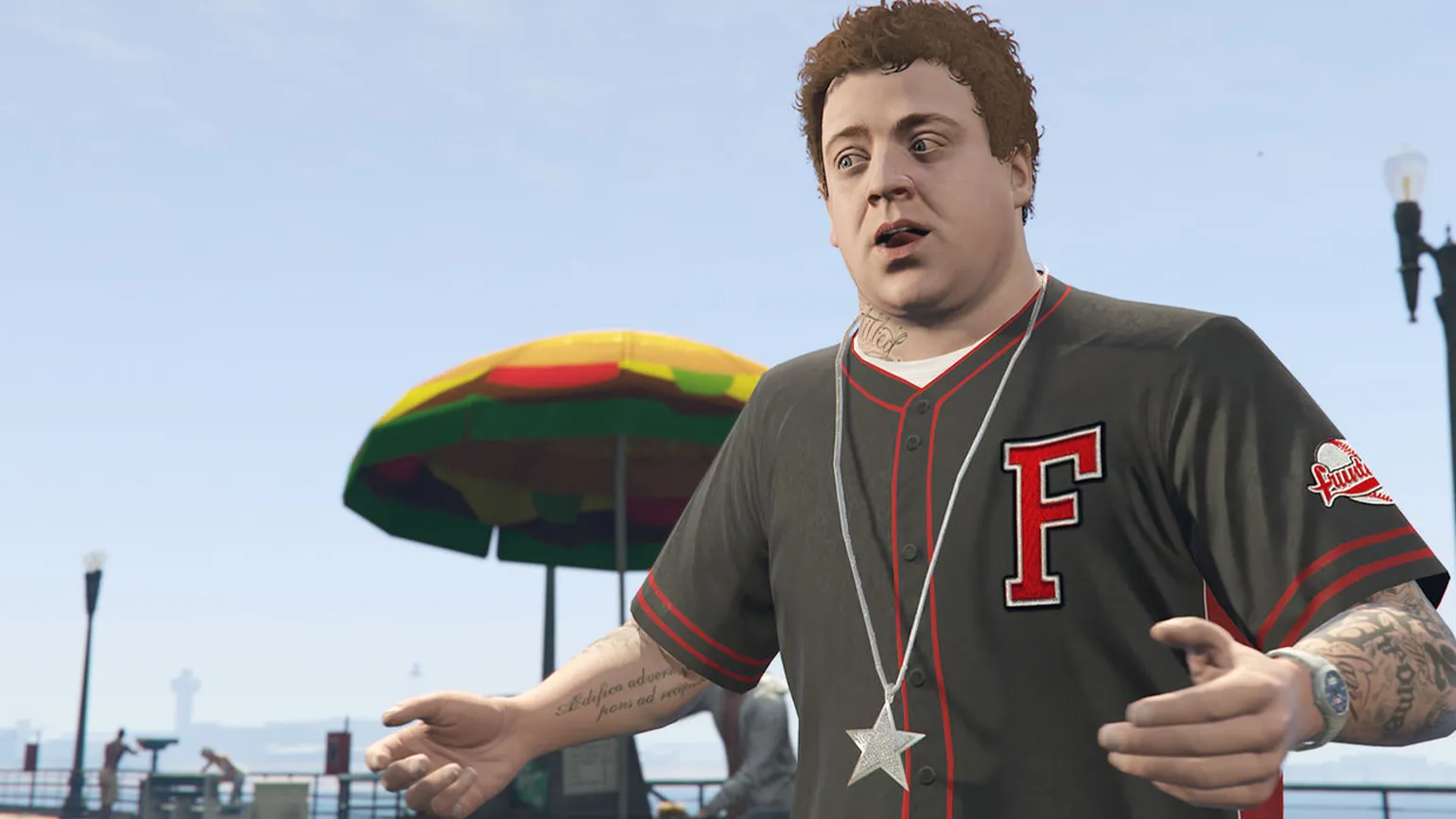 Помогали и новые геймплейные фишки. При желании можно было обжираться в Cluckin’ Bell и толстеть на глазах. Или мотать часы в тренажёрном зале, превращая Си-Джея в груду мышц. Явная аллюзия на американское общество, которое одновременно и обожает фастфуд, и так сильно ценит идеальную физическую форму. Хватало и тату-салонов, где эскизы один глупее другого — тоже массовый тренд того времени.
