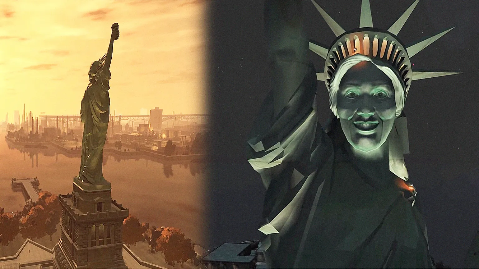 Один из самых известных американских образов — это статуя Свободы, и её факел символически направляет беженцев к новой жизни. В GTA 4, действие которой происходит в Либерти-Сити, напоминающем Нью-Йорк, факел был заменён на чашку кофе в стиле Starbucks. Таким образом американскую идею о свободе для всех желающих авторы заменили на предложение потребительства. И вся огромная GTA 4 посвящена именно краху американской мечты.