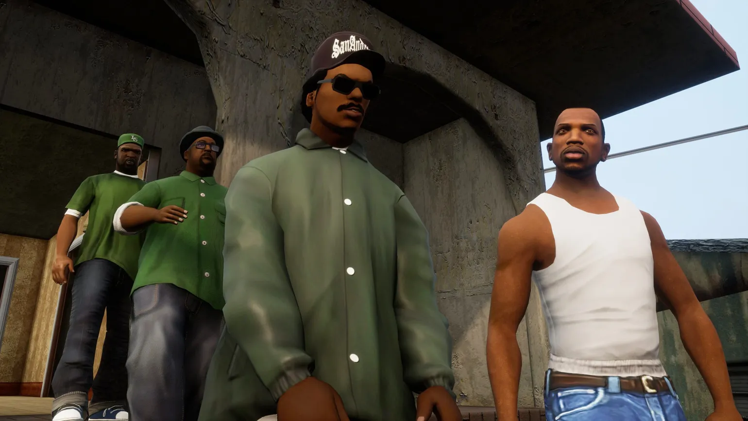 Следующий проект Rockstar делала два года — дольше, чем предыдущие игры. Так появилась San Andreas, на тот момент самая проработанная и масштабная игра студии. Здесь поднимались темы жизни темнокожих в гетто, войны между уличными бандами и полицейского произвола. При этом создатели намеренно не лезли в драму, а подавали события под фирменным сатирическим соусом. Хоть сюжет и поднимал сложные темы, авторы предпочитали доводить диалоги и кат-сцены до абсурда, так что игра воспринималась именно в комическом ключе.