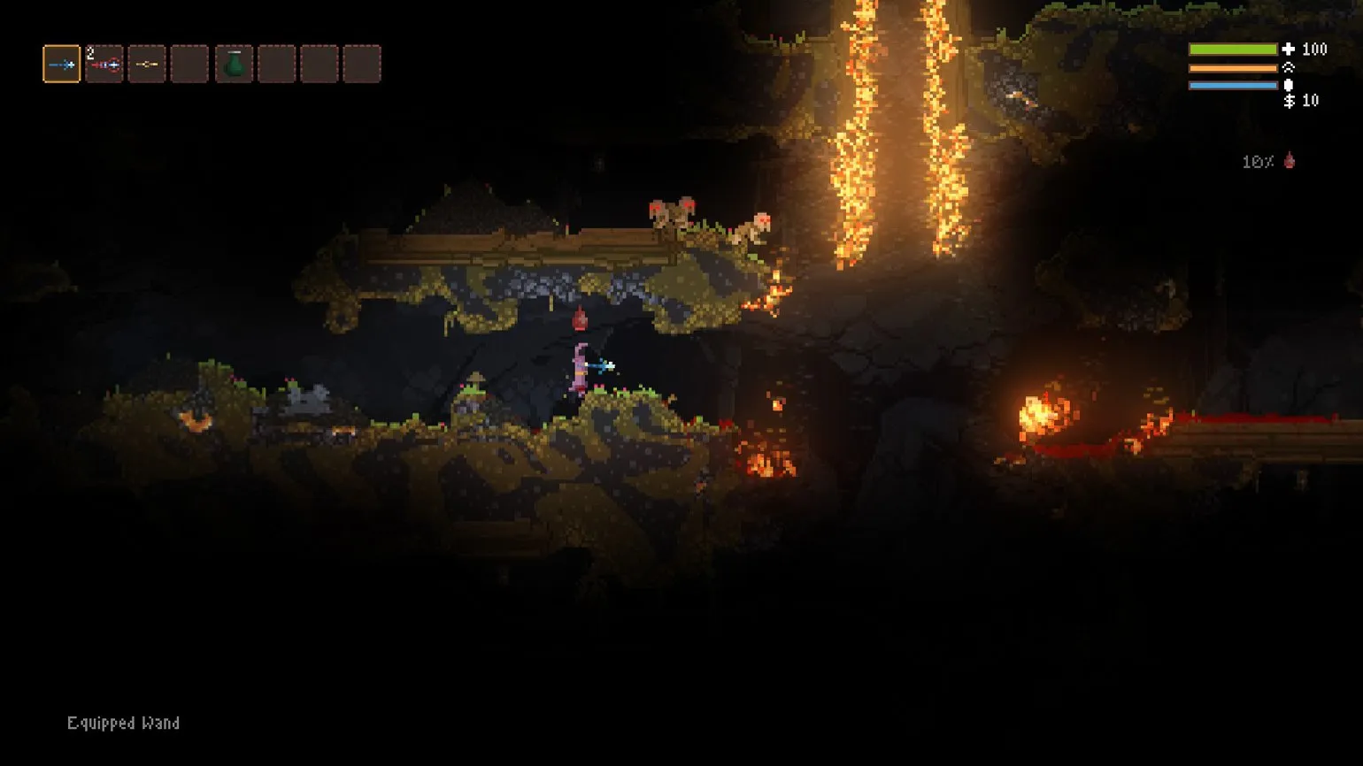 Идеи Spelunky, между тем, продолжает Noita (2020) — рогалик про ведьму, которая пробивается ко дну огромного комплекса пещер. Физический движок этой игры симулирует каждый пиксель на экране, то есть любое препятствие в Noita можно взорвать, расплавить или заморозить.
