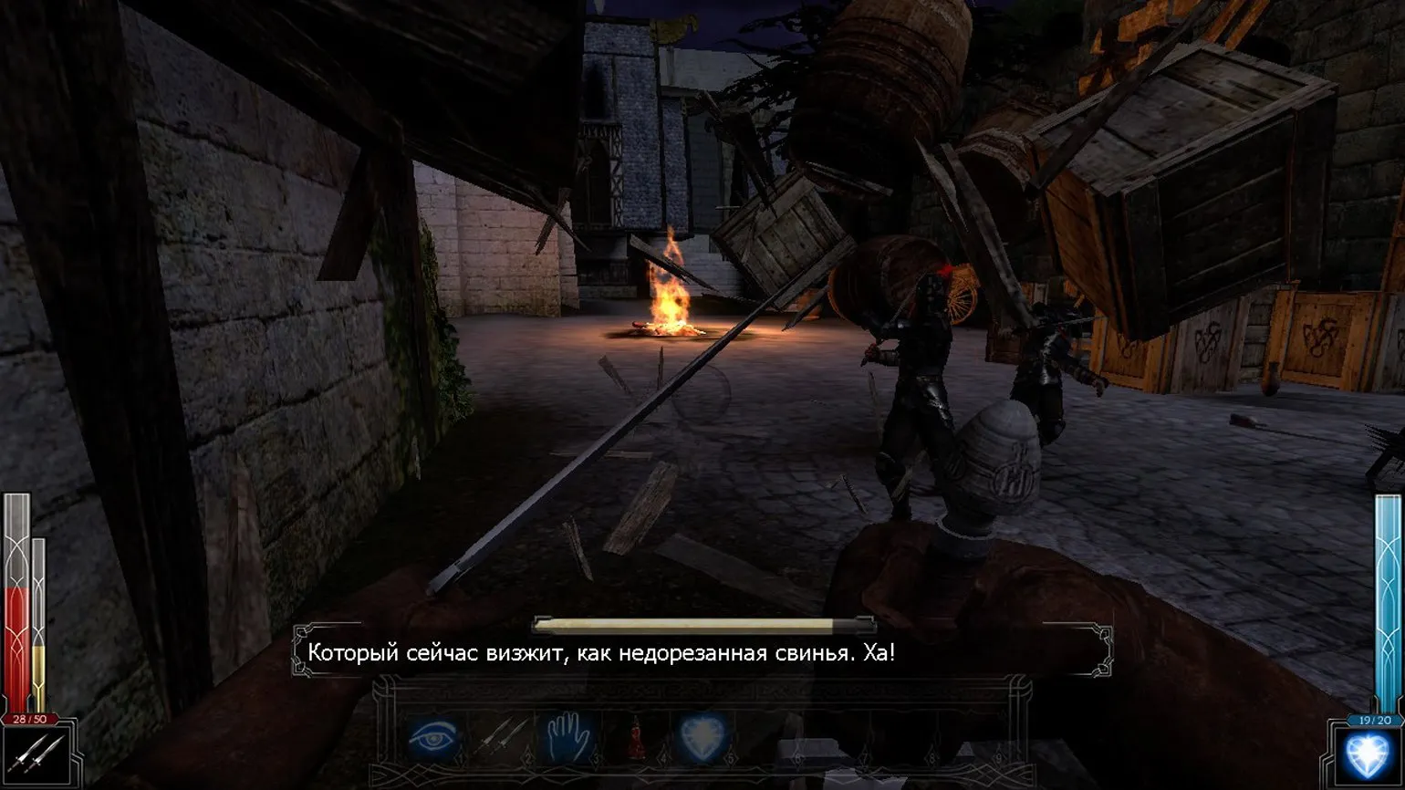 Dark Messiah в принципе ценит изобретательность игрока — даже туториал говорит вам прямым текстом: «Думай, адаптируйся». И если вы последуете этому совету, наградой вам станет самый хаотичный и зрелищный экшен, который только можно встретить в играх Arkane.