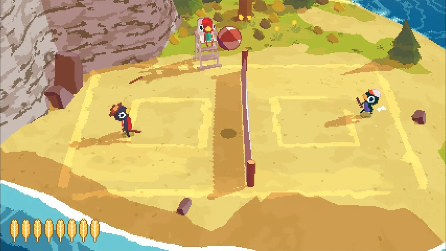 Например, счёт в бичстикболле — состязании, которое придумал один из персонажей, — складывается из баллов, заработанных обоими игроками Скриншот: игра A Short Hike / Adamgryu