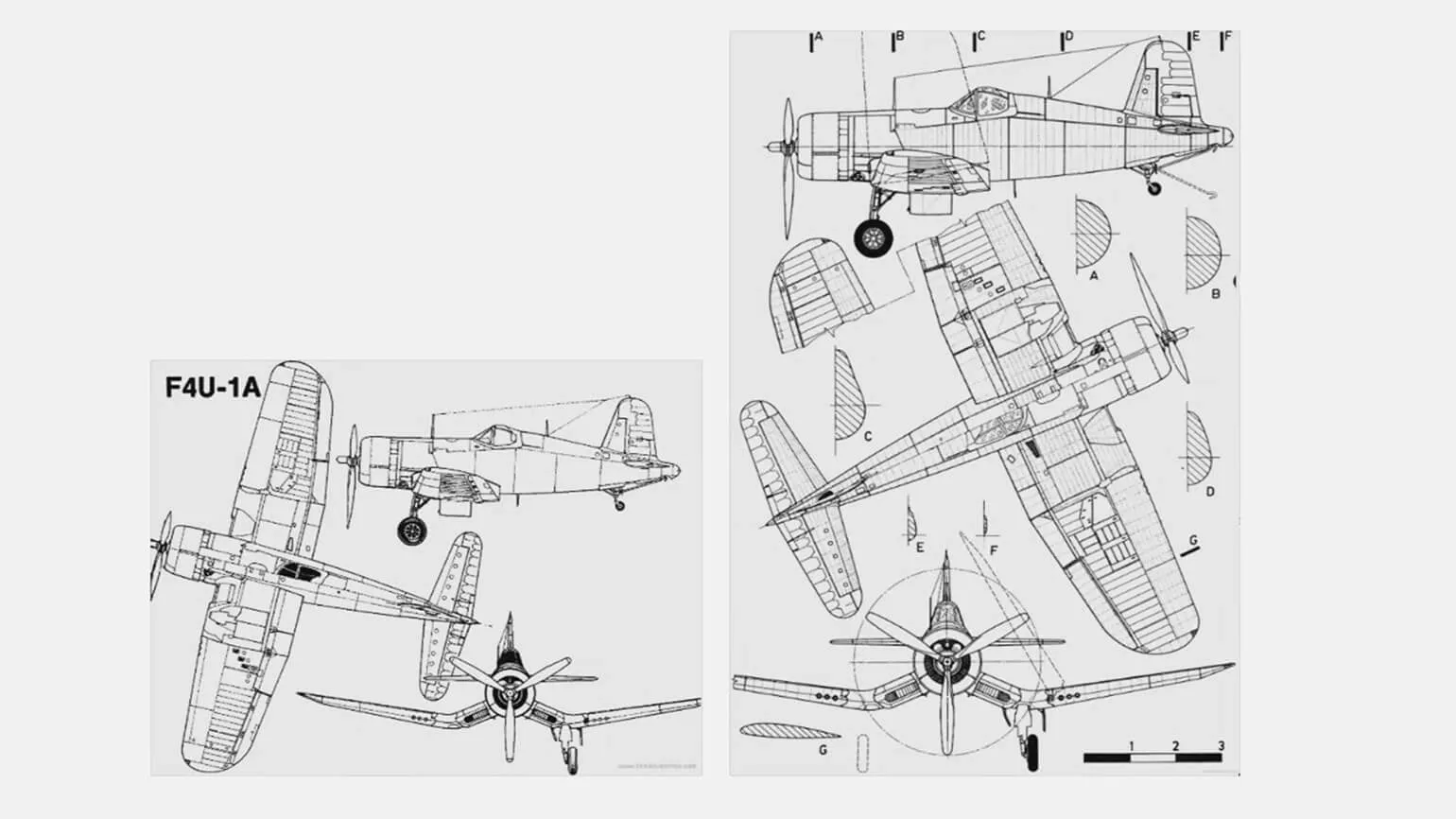 Так как будущие модели имеют прямое отношение к военной технике, лучшими референсами станут чертежи. Но проблема в том, что нельзя просто взять любую схему из интернета и построить модель на основе ортографических проекций с разных ракурсов. Всё дело в том, что существуют чертежи, на которых самолёт представлен спереди, сверху и сбоку, но при этом нет подробной информации о расположении мелких деталей, а также о внутреннем строении крыльев и фюзеляжа.
