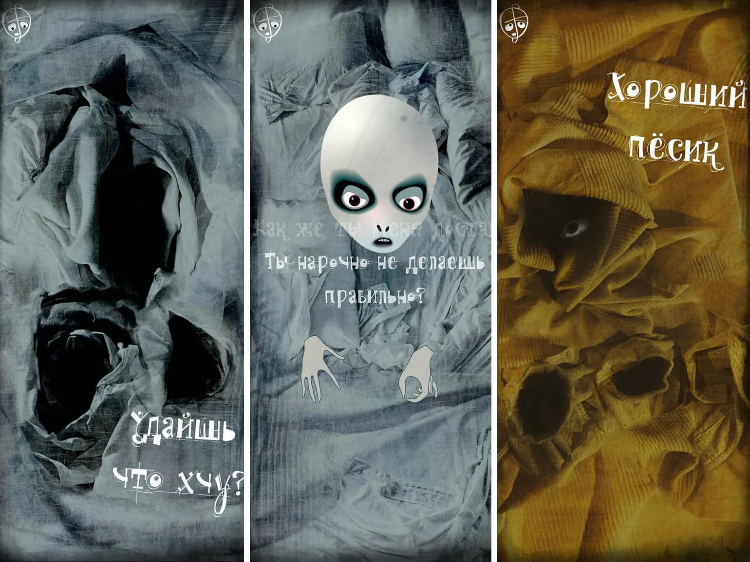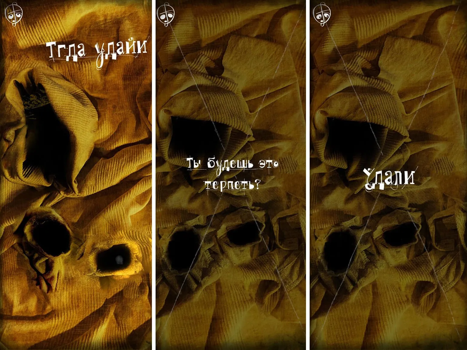Если разбирать «Франц» на жанры (что в случае с творчеством Ice-Pick Lodge кощунственно), то это… ну, тамагочи плюс визуальная новелла. Одним движением Франц можно гладить, другим — бить. Иногда нужно собирать слова из отдельных букв или удалять слоги и части фраз. Реплики и сама Франц прячутся, поэтому тебе постоянно приходится свайпать между визуально однообразными экранами, что сильно утомляет.