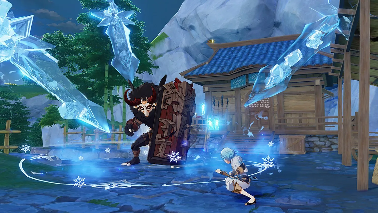 Выше мы упоминали, что бои в Genshin Impact, не менее эффектные, чем в иных слэшерах, не требуют соблюдения таймингов. Заучивать сложные тактики для победы над боссами тоже не нужно. Но сражения вовсе нельзя назвать скучными, ведь геймдизайнеры сдобрили драки небольшими, но увлекательными элементами. Например, бог из региона Инадзума призывает на арену глаз, который нужно уничтожить, правильно подобрав стихийную магию. Сделав это, персонаж получает защитную ауру, оберегающую от атаки, которая может уничтожить его едва ли не с одного удара.
