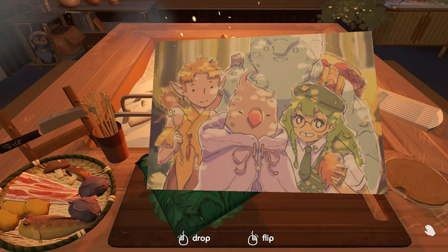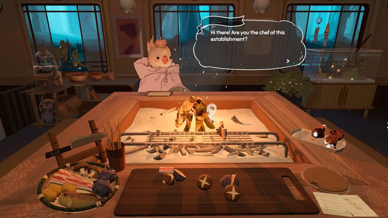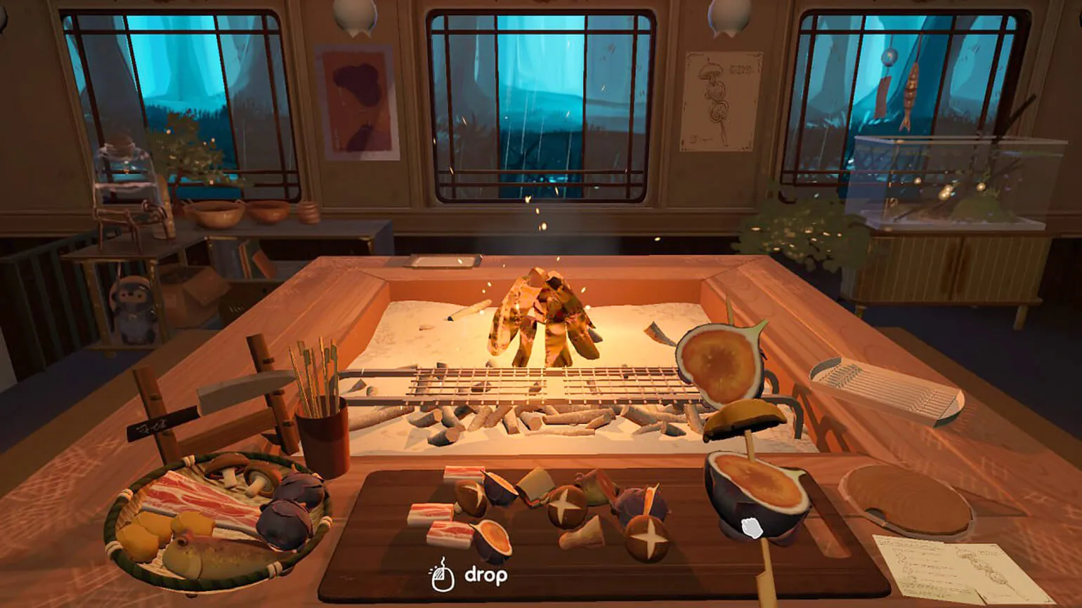 Игра невероятно уютная: перед вами очаг, в котором мягко тлеют угольки, из-за окон доносится шум дождя, а пассажиры (хотя фактически он всего один) напоминают персонажей из Spiritfarer. Продуктовой экономики нет, строгих рецептов и таймера тоже (почти).