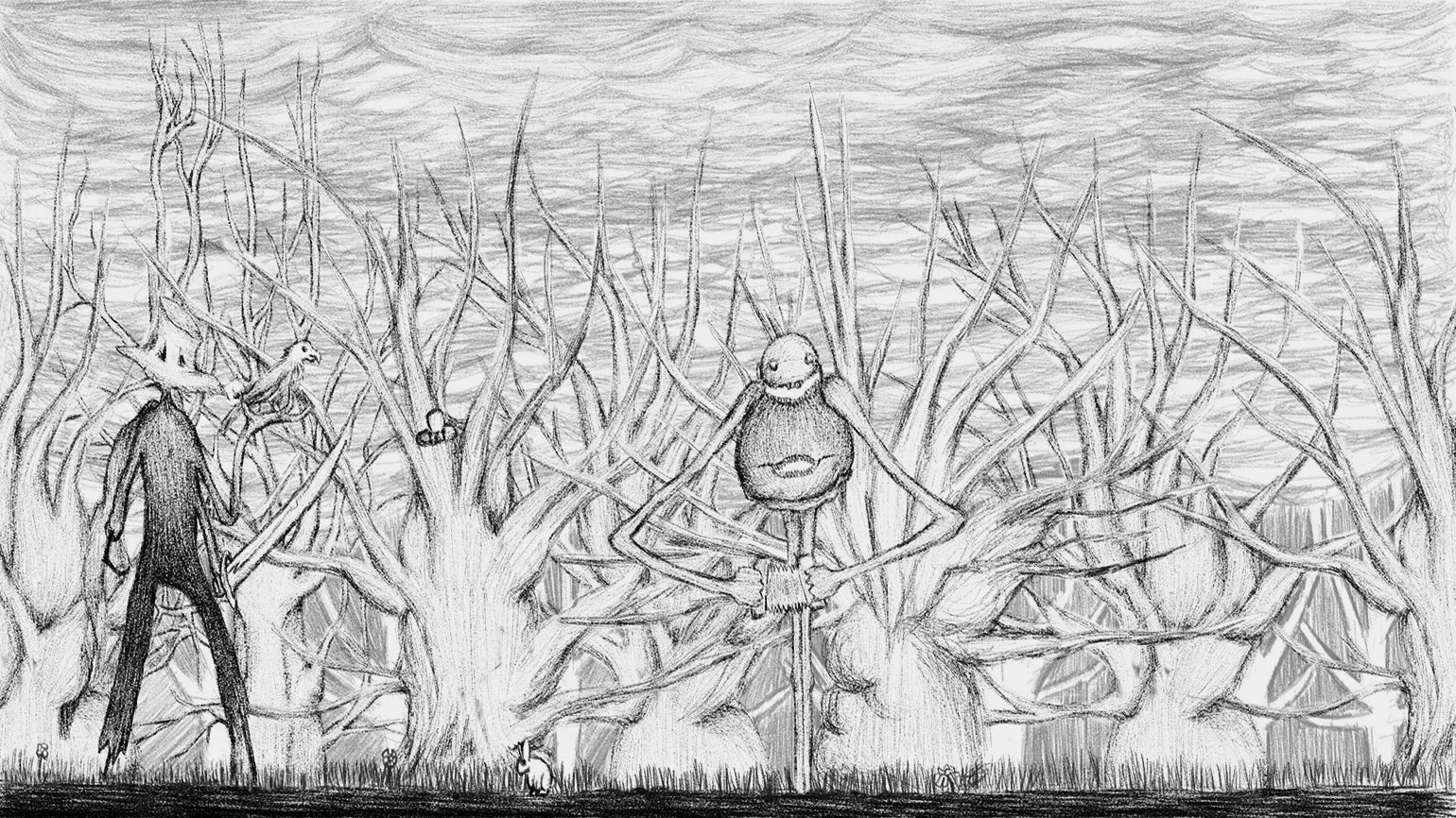 — Они всё ещё дёрганые, неполные и неплавные. Но в первом билде было ещё хуже. Перед тем как нас номинировали, я, не без помощи Вадима, залез в Unity, чтобы переделать визуал в соответствии со своим видением. Я поставил все анимации вручную, переделав атласы, и усложнил структуру уровня, добавив деревьев. В моём представлении лес должен быть зловещим, а не выглядеть тремя веточками, торчащими из лысой земли. Это привело к тому, что Вадиму сложно было подготовить новый билд, так как требовалась дополнительная оптимизация.