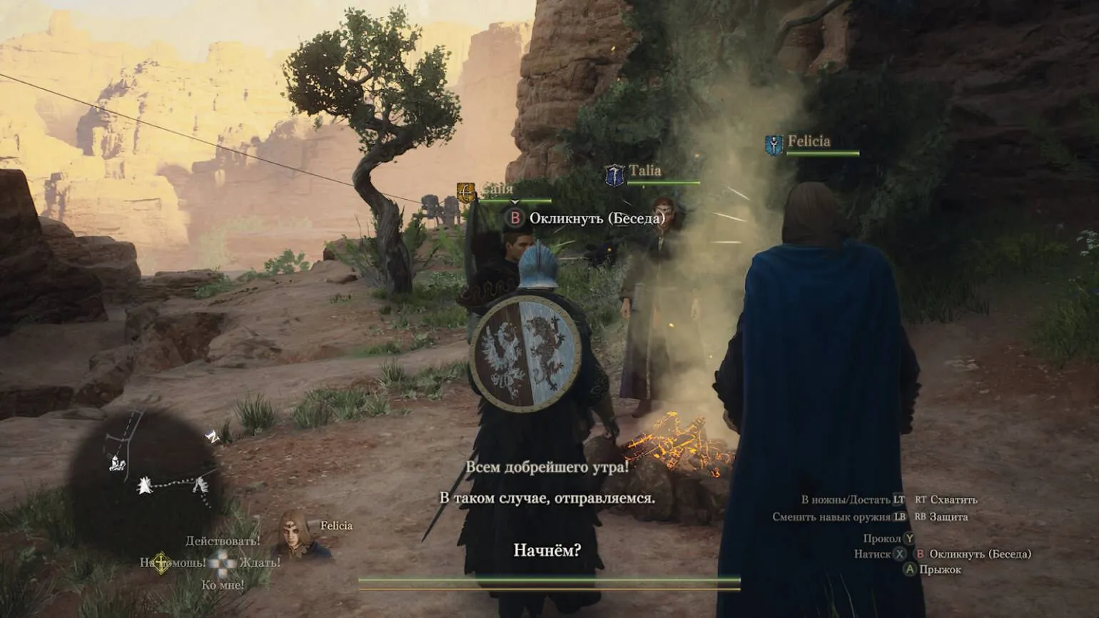 Ну как не заботиться о таких милых ребятах? Они же доброго утра после привала желают!Скриншот: игра Dragon’s Dogma 2 / Capcom