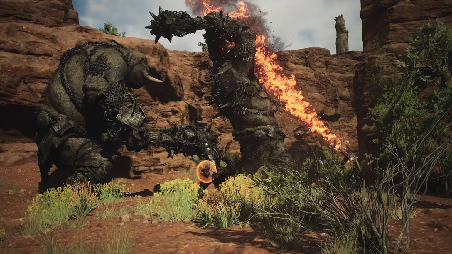 Иногда игра вываливает на вас сразу несколько великанов, и это всегда сложная задачка. Эти вот ещё и в бронеСкриншот: игра Dragon’s Dogma 2 / Capcom