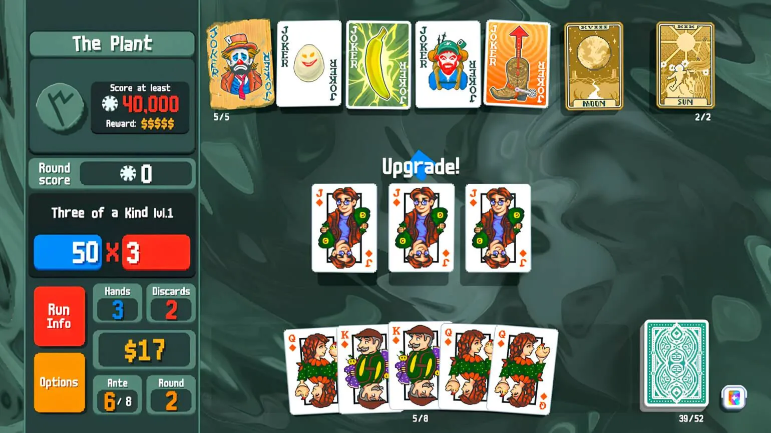LocalThunk пошёл другим путём — и отказался от битв с врагами, наличия героев и полосок жизни. Главный герой Balatro — это ваша колода, которую при должных старании и изобретательности можно изменить до неузнаваемости. Огромное количество карт вкупе с их необычным возможностями предоставляет такой простор для творчества, который невозможен в той логике декбилдеров, которую ввела в моду Slay the Spire.