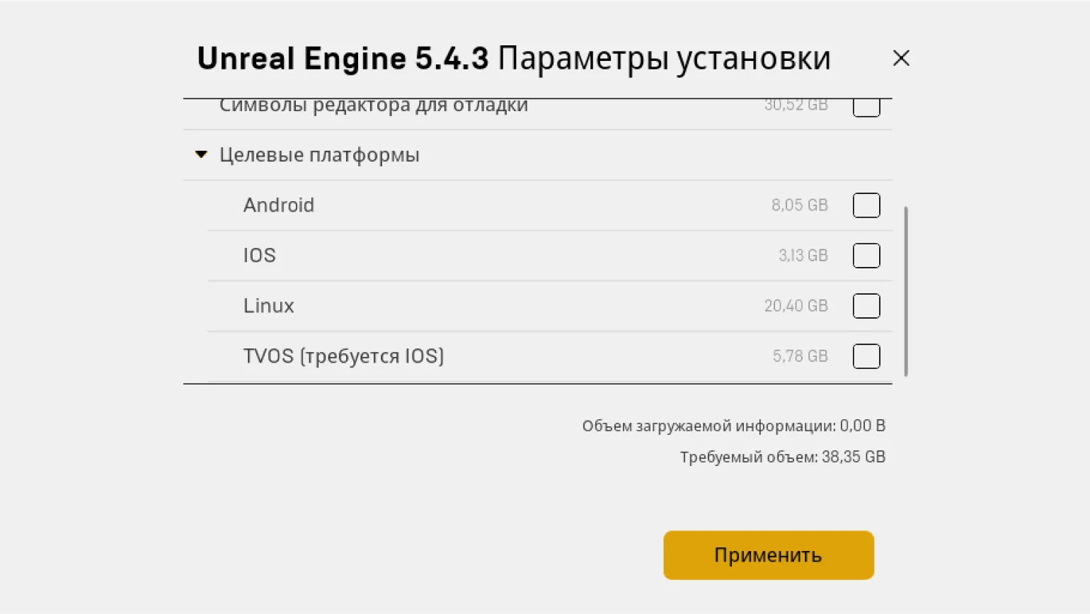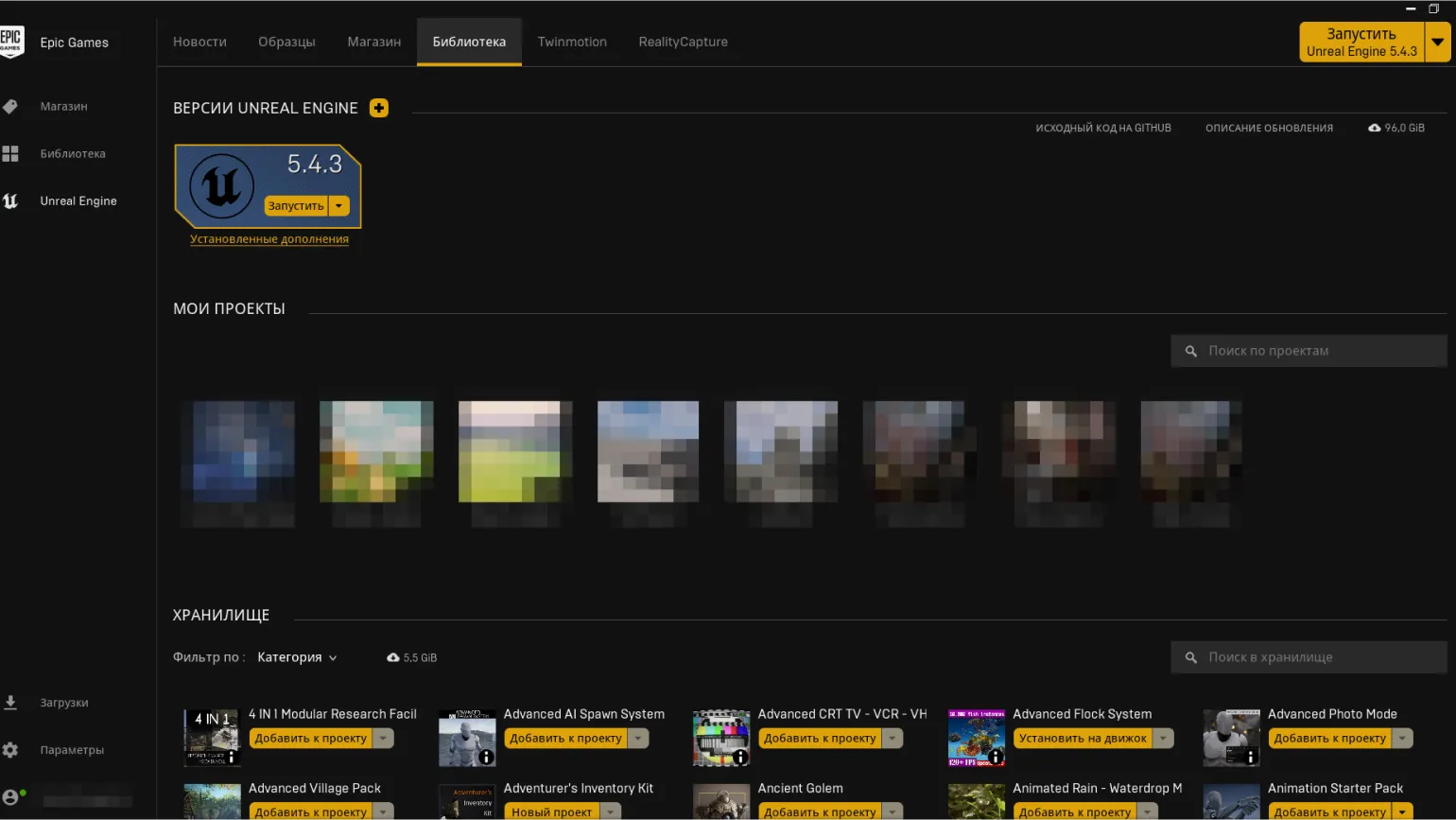 Скачать движок можно из лаунчера Epic Games. Достаточно зайти в раздел Unreal Engine и перейти во вкладку «Библиотека» (Library). Клиент уже доступен к установке в секции «Версии Unreal Engine» (Engine Versions). По умолчанию он будет установлен в папку /Epic Games на жёстком диске.