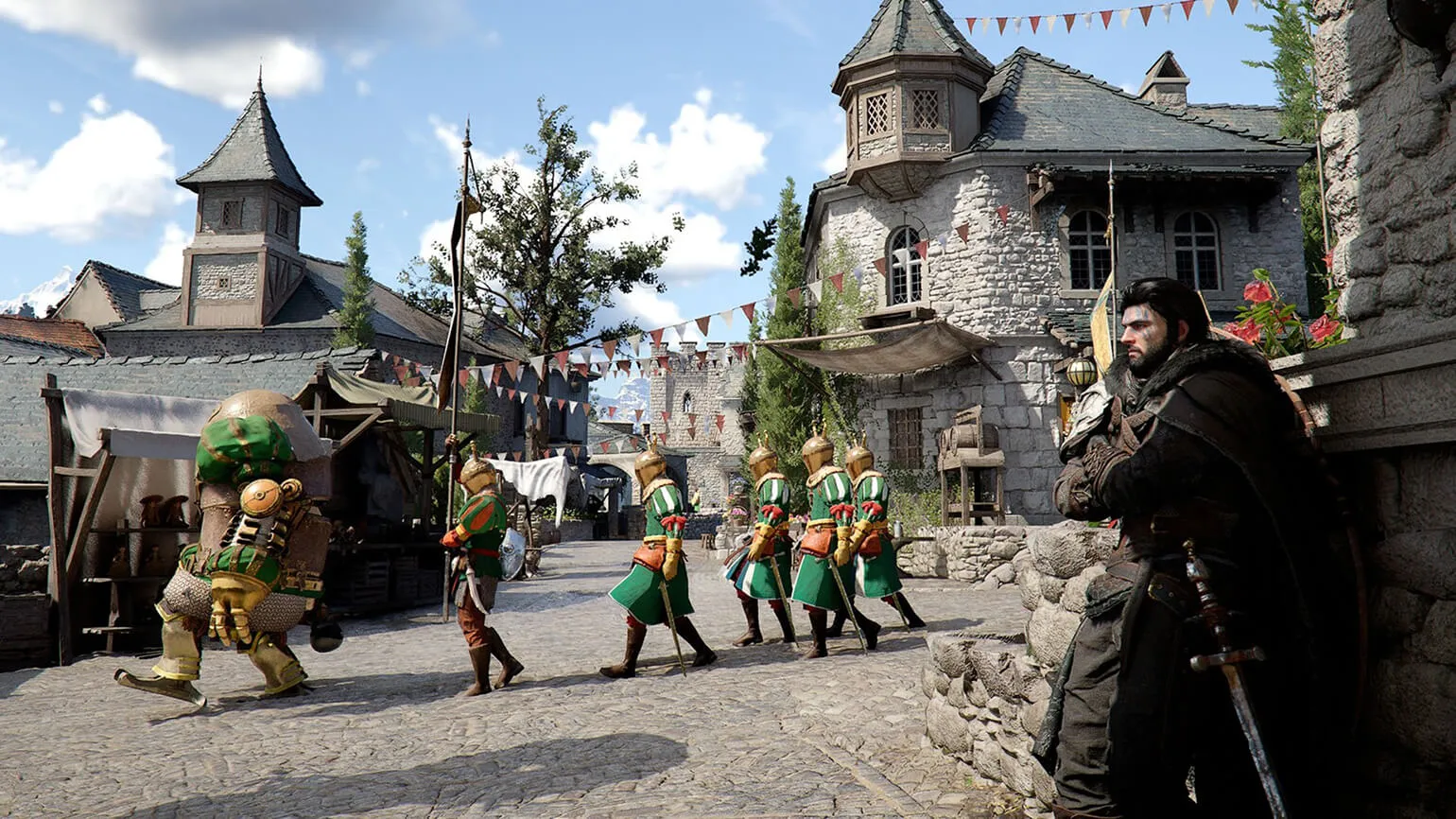 Она похожа и на «Ведьмака 3», и на The Legend of Zelda: Tears of the Kingdom (здесь точно так же в небе парят острова, с которых можно спрыгнуть), и на Dragon’s Dogma 2, и на Assassin’s Creed (паркур), и вообще на все игры в открытом мире, вместе взятые. Здесь есть рыбалка, армреслинг в тавернах, охота, кулинария, возможность полетать на воздушном шаре и бог весть знает сколько ещё разных занятий. Котиков и собачек гладить можно, на драконе дают полетать.