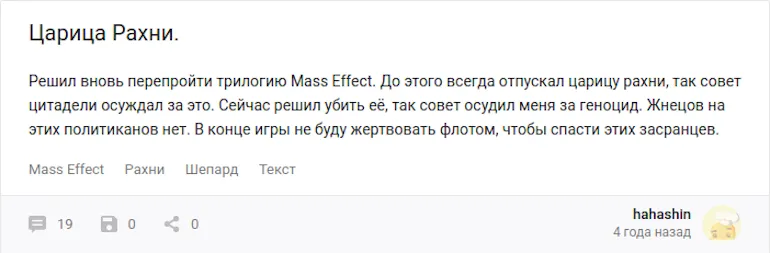 Часто бывает, что последствий нет вообще. Игрок совершил сложный для него выбор, ему показали ничего не меняющую кат-сцену, и всё. Такое можно встретить в играх серии Mass Effect: